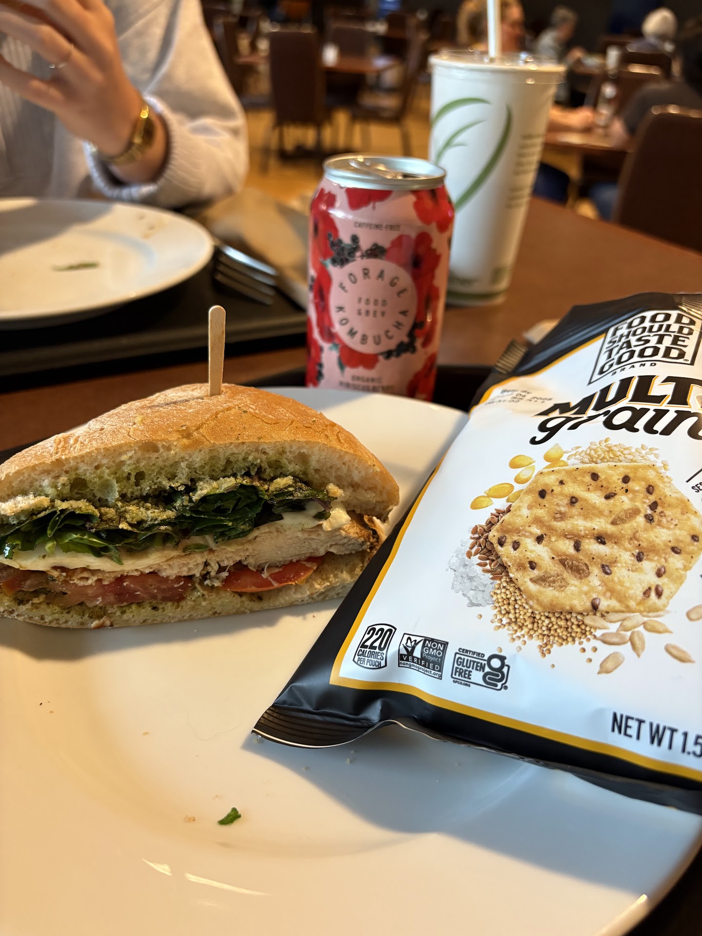 Vibe uptight, food overpriced, MSG plentiful. (or WAY too much salt in the chicken strips- dont really know if it was MSG or salt, but there was an "off" chemical taste in addition to the megasalt taste) We visited the weekend after Mothers Day. When the order taker hyperventilates "form a line!!" when there are literally only two small groups of customers near the register trying to decide what we'll order from this difficult menu, and you get dirty looks from those who seem to be laptop regulars just for having the audacity to walk in with well-behaved children on a weekend, you know that this is an unhappy place. Its possible we happened to be there at a bad moment. A generous 2 stars for having an option to eat on campus at all, and for the friendly folks who brought out our trays & checked on us. That was a nice touch- required if the prices are to remain so high! I'd prefer better quality food though, a manager to clean house or rebudget so that the friendly ones can keep their jobs AND the food quality goes up a notch. Put nice people at the register to take orders and just one person at a time to bus tables unless its a high...