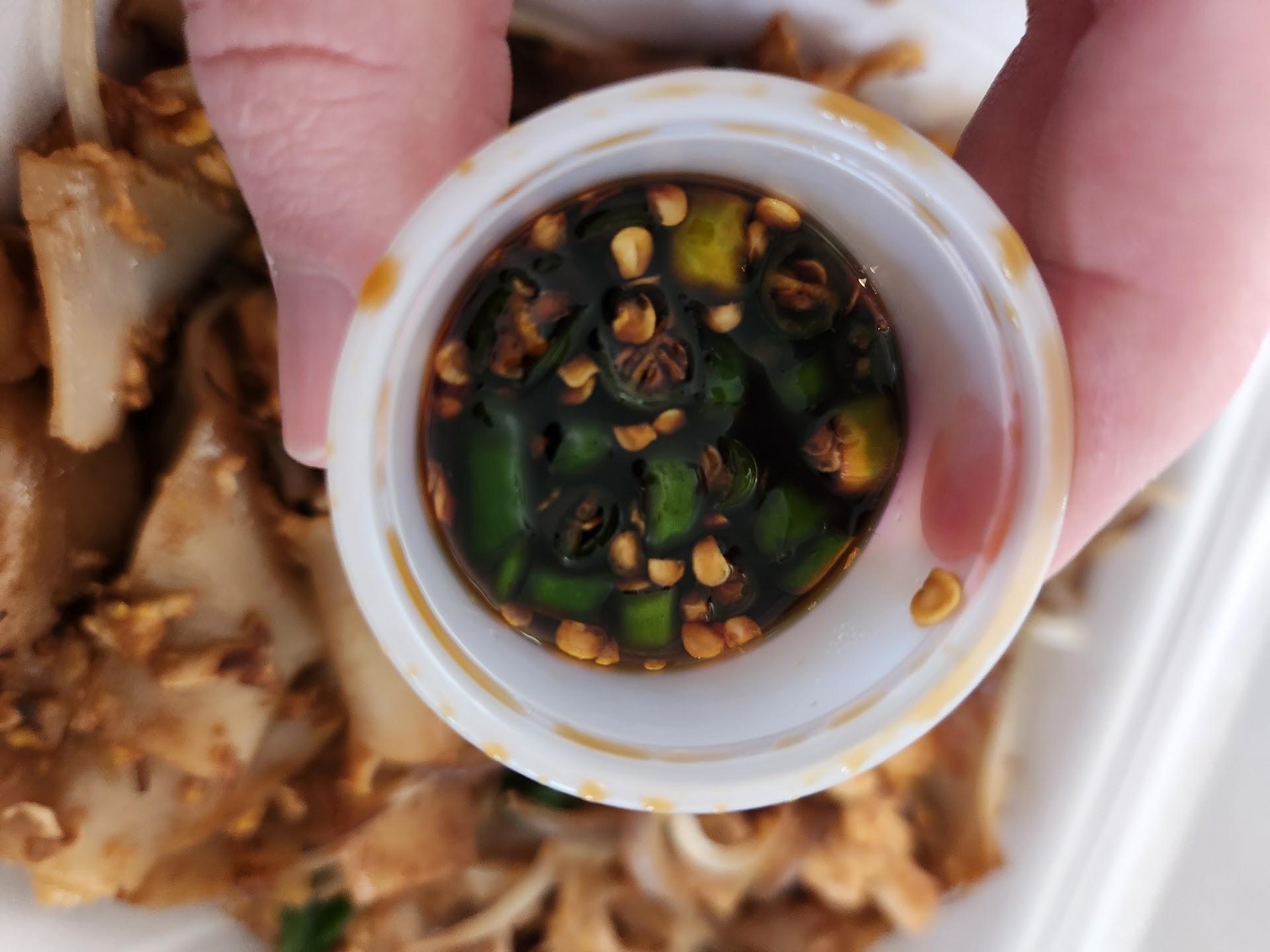 The Kaoy Teow with chicken was bland. It came with a small side of chili soy sauce but it was way too hot for me so I just added regular soy sauce. That made it better, but it was still lacking flavor. It looked different than the photo as well. I was expecting bigger chunks of chicken and more veggies. Also, the dumplings had an odd taste to them that I couldn't place. Overall, I think this place is worth another try. I definitely recommend the spring rolls though!