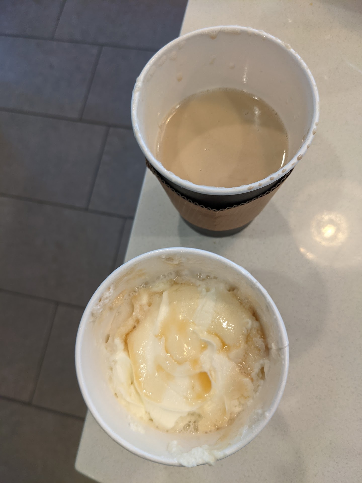 She went to getting my drink then looked over and yelled "Ma'am. Ma'am. Card Ma'am" in an aggressive tone, as I was already actively changing the direction I inserted my card into the chip reader. During all of this my dog was tied up on the other side of the path, as they don't have anywhere to hook your dog up outside on their patio. Once I returned to her I realized I forgot her pup cup, but wasn't willing to go through dealing with the employee again, so we went elsewhere to get what we needed.