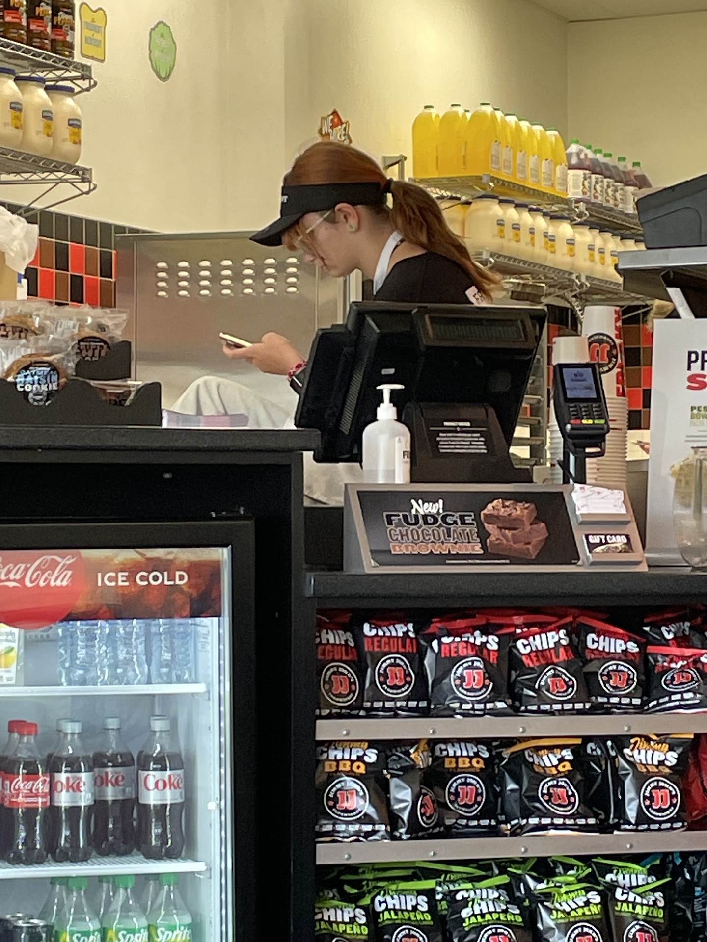 Then the worker was sitting on the counter on her phone. For the amount of money you pay for food you would think they would pay a little more attention to the cash paying customer instead of their phones and drama...