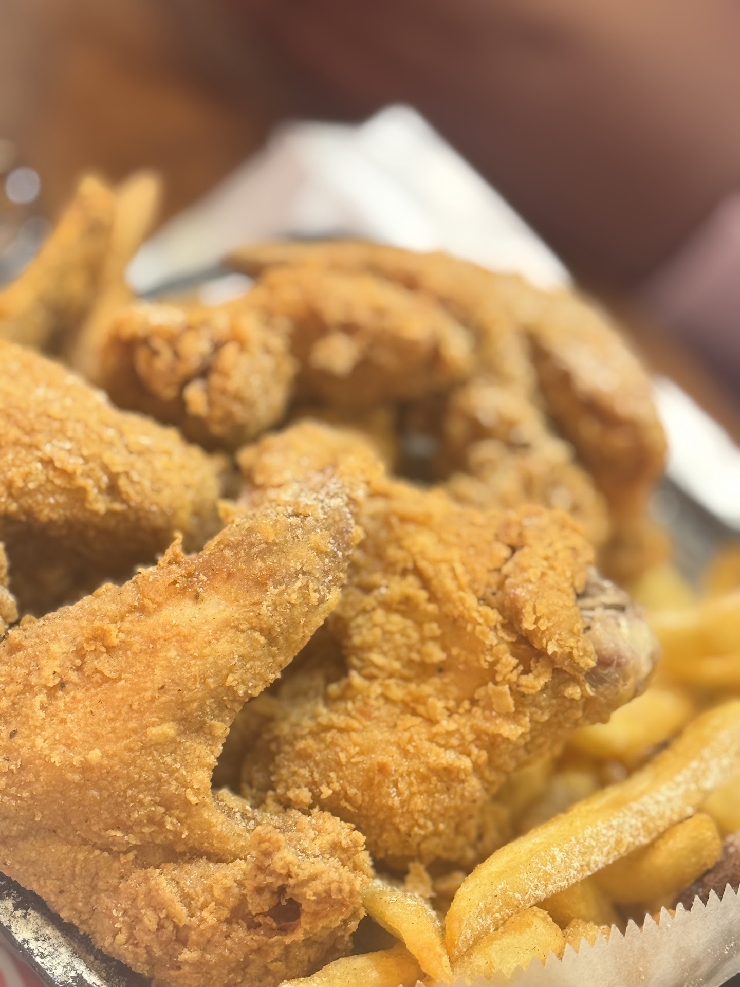I called my order in on Saturday 12/14 at 4pm. I ordered a 30pc party wings and fries. The menu link online had a picture of the menu and it showed the 30 wings and fries priced at $29.99. I placed my order by phone and was quoted 20 minutes. I pulled up 45minutes after I place my order by phone and saw that the drive up had 3 cars in it so I parked and went in.