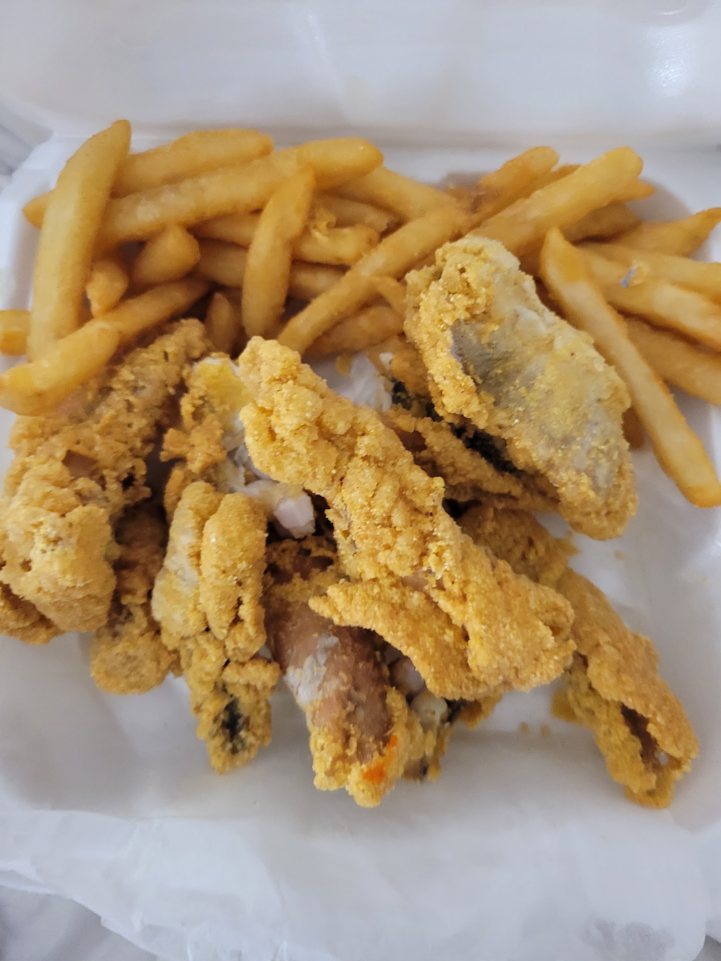 Read moreThis was my first time ordering from here in over a year. We don't eat much fried foods anymore. I showed up 5 minutes after my assigned pick up time. Tasted my fries when I got in the car and they were horrible the young lady told me that because they had been sitting for 5 minutes in the box and the steam made them this way. I asked for new fries which would be 3 minutes. Then she says let me see your fish, it will be cold I will fix you some more. I asked how long will that be and she said 7 minutes. By the time I could say, I'll keep the fish, she threw it away. I ended up waiting. Almost 15 more minutes for my food. Then it made me sick. This the 2nd time I've had their food after eating it for years that it has made me feel sick. I guess it's the grease. Now more Jr's for me!! This is also the first time I seen employees other than the...