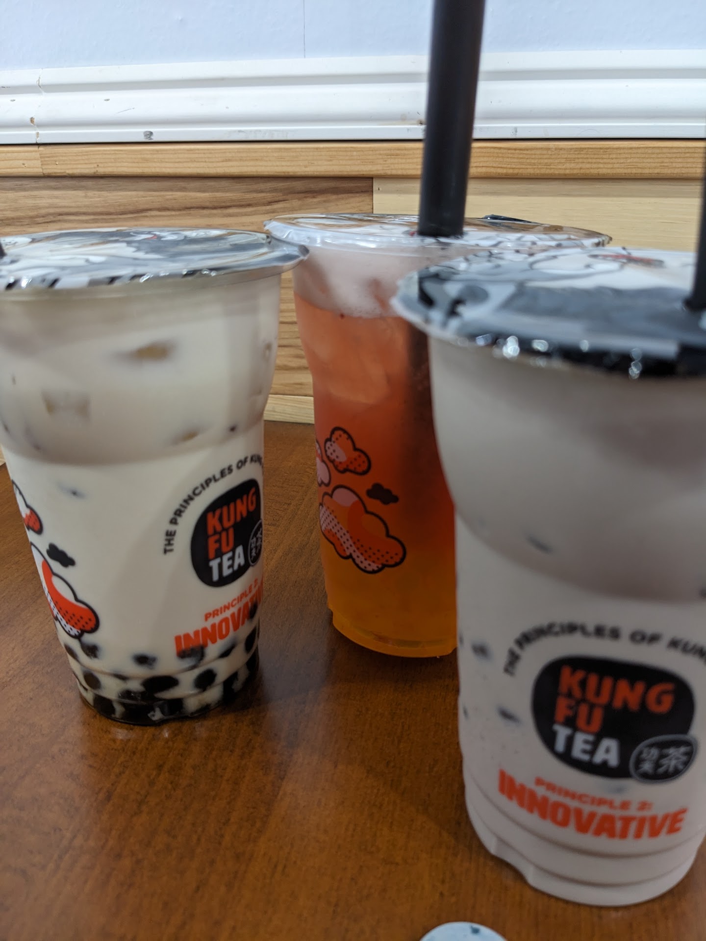 The drinks were great not overly sweet and Boba was fresh and delicious all the way around I tried 4 different drinks all were epic the amount of drink they have to choose from is great each with its own pizazz.
