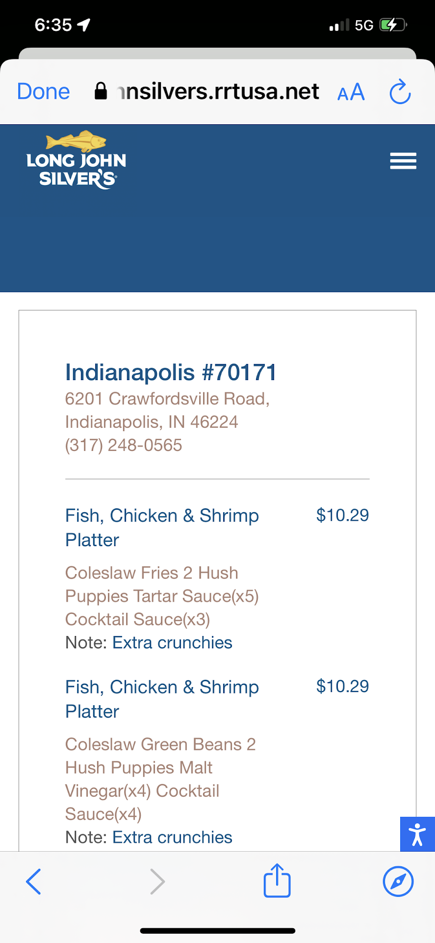 Ā Ā Ā Read moreThis is the last time at the Speedway location. The past 3 times I've had issues with my order. The first time I had an issue I ordered the shrimp and fish plater as I always do. The fish was unedible it was so overcooked It was as crisp like batter all the way through. The very next time I ordered the same thing but my sides we're wrong and short hush puppies. After 2 bad experience's in a row you might ask why try a third time. I love Long John Silver's! I've enjoyed there food since my parents took me there the very first time 40 years ago. So my 3rd trip in a row same order my wife picked up for me. I would have checked at the window if I had been there after the previous two tripsbut my wife rightfully didn't suspect anything the order wrong again and uneddible! Looked like the fish came frome the bottom of a dirty fryer burnt little pieces of batter all over and the fish was stuck together and split open and on top of that no kripys in the box. I couldn't believe it I'm so disappointed ā¹ļø never again. Is there a Captain...