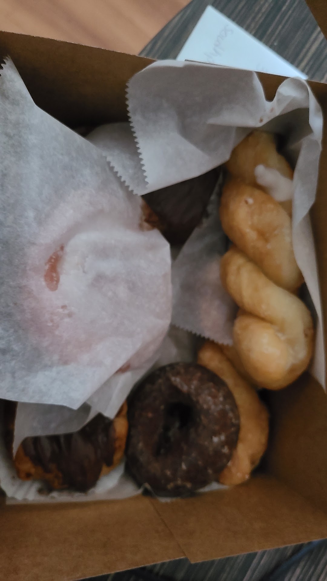 I ordered about 6 random donuts. It cost me less than 8 bucks. Not bad. But I still wasn't that impressed. We took the box out to the car, planning on eating them later and went to a restaurant for breakfast.
