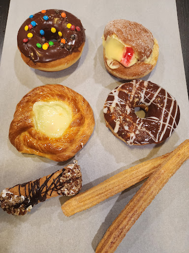 These took a hit during transportation home. But it doesn't change the flavor. The Bavarian creme pastry has smooth and creamy flavor while not being overly sweet. These donuts are huge compared to name brand donut places. The churros are filled with a raspberry jam (or what I believe is jam). Slightly tart but that what I want in a raspberry jam. The Danish has a glaze that gives the pastry a sweetness to satisfy any sweet tooth. And the cannoli has a sweet cream filling with each end being dipped chopped pecans topped with chocolate sauce. The cannoli itself is crisp. Great contrast of texture. Prices are very reasonable. They also sell cakes, which I look forward to...