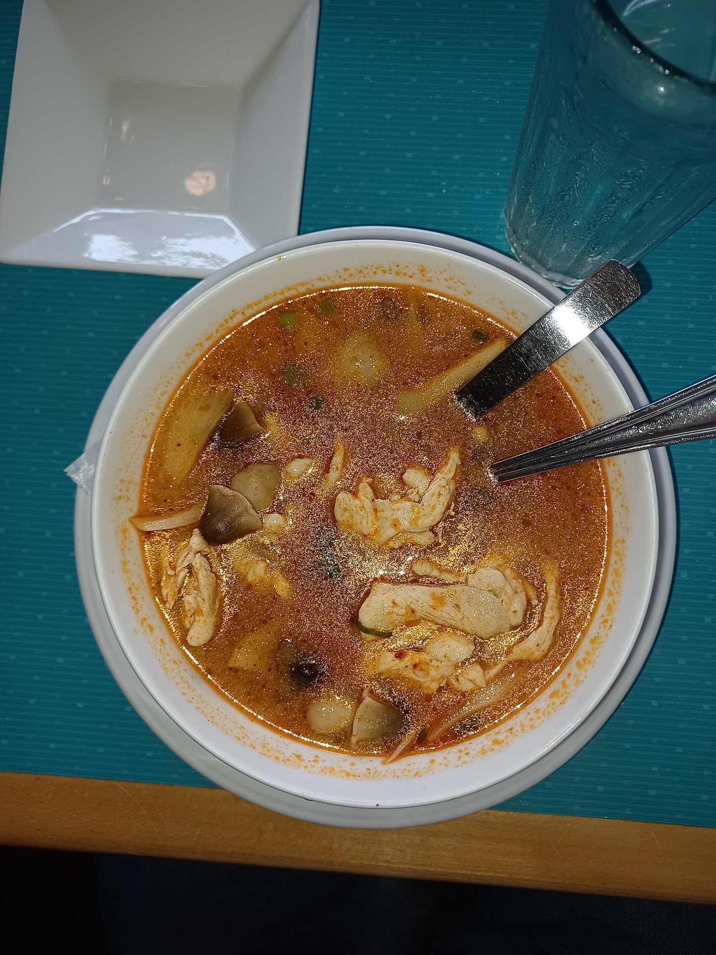 My wife had the Pad See You with pork (spice level 2). Our daughter tried the Tom Yum Noodle Soup (level 2) and our son had the Duck Noodle Soup (level 2).