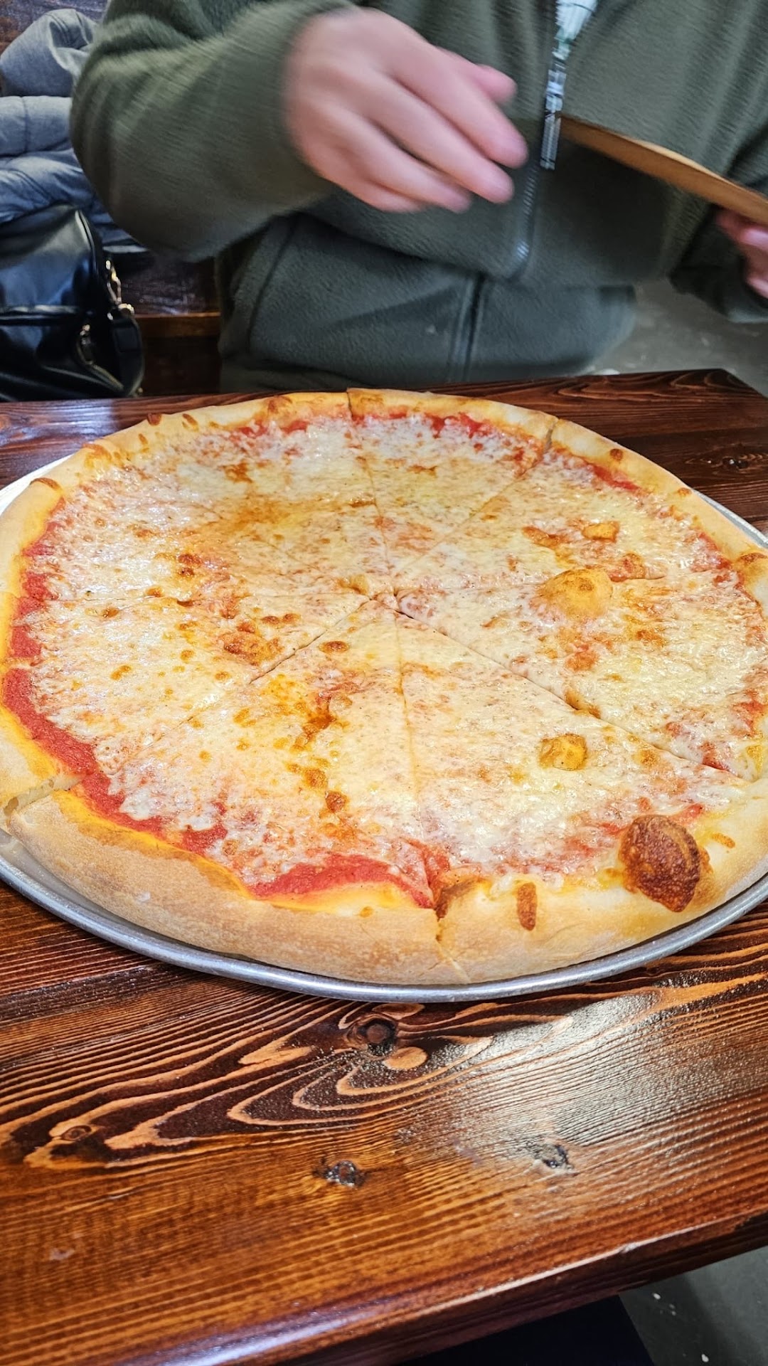 An authentic and tasty version of NY style pizza and garlic knots. A crust that is thin enough crust to stand up to the toppings, and enough of a chew that it isn't a cracker texture. The garlic knots had a golden brown color and a good amount of garlic. It came with a cheesy nacho cheese and a garlicky tomato sauce.