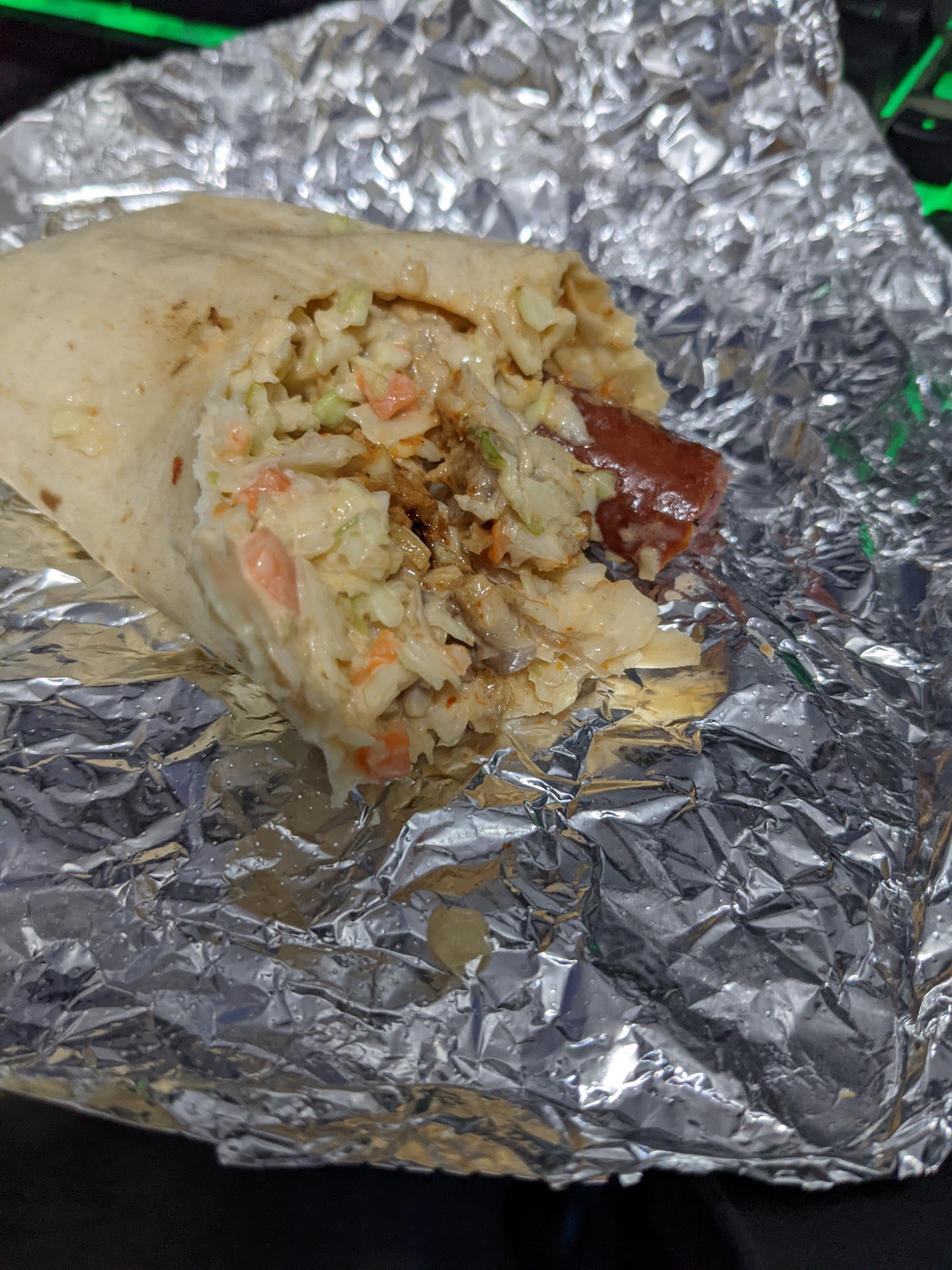 This place is terrible. The food is terrible. The service is terrible. I live close by and placed an online order. I walked there after I got the notification that my order was ready for pick up. I had to wait ten minutes for my order. I ordered the asun spiced goat meat and beef shawarma. The beef shawarma was literally half of a length-wise cut hot dog, stuffed in a tortilla with coleslaw. The asun spiced goat meat was luke warm and very tough. It came with no side dish/rice/starch and there was no option to order this. It was supposed to come with onion, cucumber, and tomato, but they did not provide this even though it was ordered. While I was picking up my order, there was a couple that walked out due to the wait. They were not busy. They had four customers at two tables and me with an online order. Just...