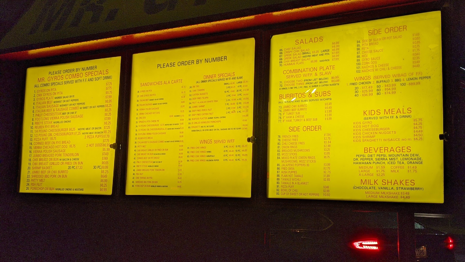 Read moreThe hubbs and I had eaten a very early dinner at another restaraunt earlier in the night and didn't eat much because we were less than impressed with the food, so by 9 or so we were starving for something decent to eat. I searched several places close to our hotel and we decided on this place. We almost didn't go in because it looks a little on the run down side but man am I glad we went ahead and went in. We grabbed it to go and went back to the hotel and were pleasantly surprised with how good the food was. We had a hard time deciding what to eat because the menu is MASSIVE. Any time I go to a restaraunt that serves 3 or 4 different types of foods I'm always hesitant but the gyros, fries, and spinach pie were to die for! The chocolate cake was pretty good heated in the microwave and the hubbs loved the baklava. I'd definitely eat here again if ever...
