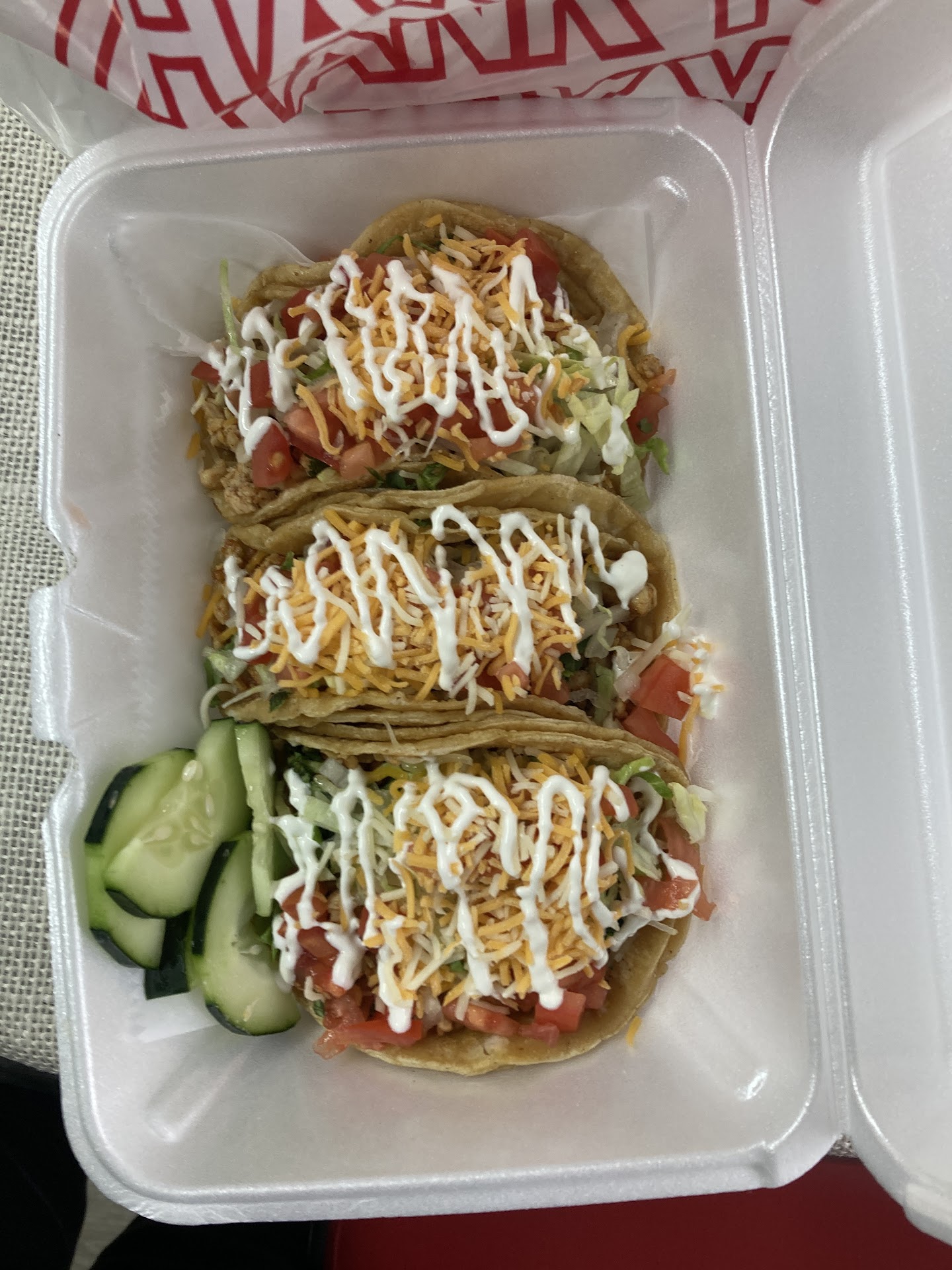 I ordered 3 street tacos, steak and chicken. Although my steak had good flavor, I didn't care for the chicken very well. I ordered cheese on my tacos and got Fiesta blend cheese from Walmart... not real Mexican cheese. My Dad's ground beef wasn't very flavorful either.