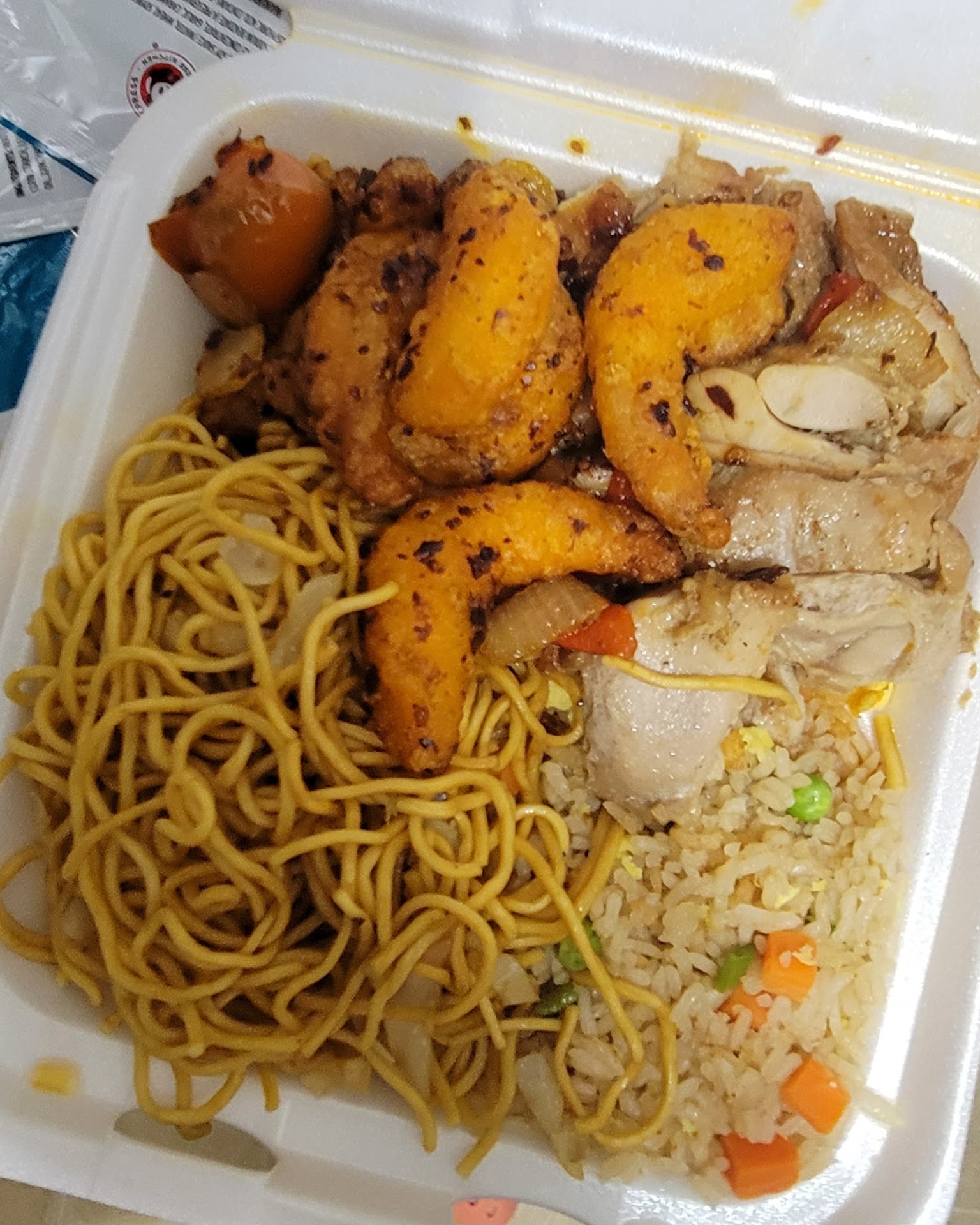 Add.to this that it took me 15 minutes of going back and forth with the lady, and tells me she will give me.the "Chicken only" and she comes.up with only 1 of the 3 portions of my meal. ( I had 2 completely burn in the box I gave her), and she said she could only give me.one because I did not have my receipt..
