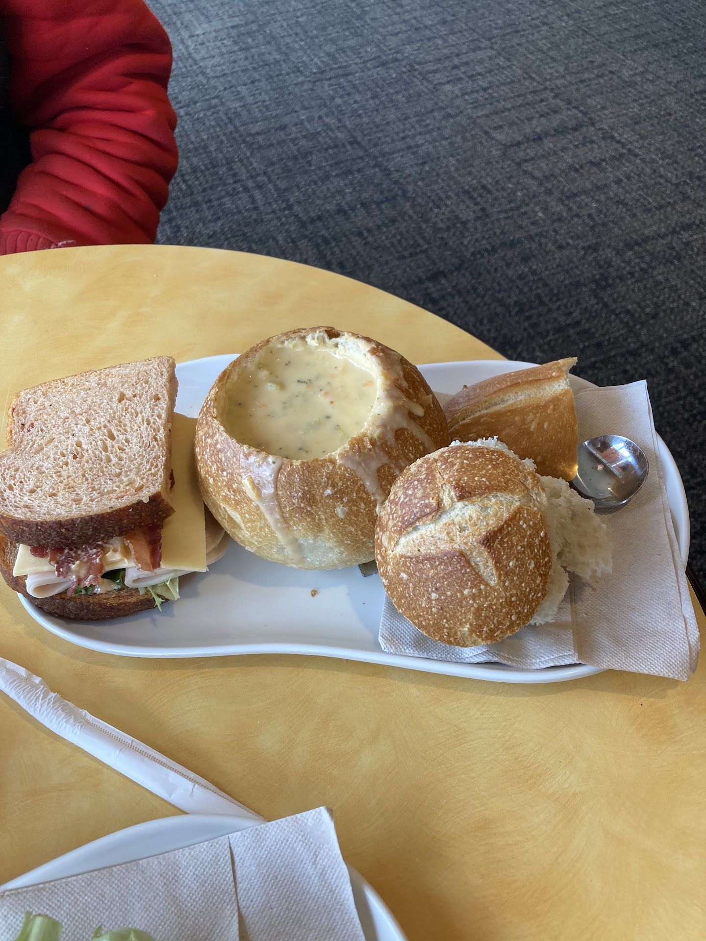 As if that crazy wait wasn't enough, I get home and there are missing items - they only put 2 baguettes in the bag instead of 3, the packing was hasty - 2 of the 3 Bowls of soup have drip marks down the side and the absolute WORST...my $11 salad is entirely filled with BROWN LETTUCE! I was livid. This used to be one of my go-to Panera locations pre-pandemic, so was did not expect such a poor experience after 1.5 years, but this was unacceptable. THE worst!! Waste of time, waste of money... Never will I return to this...