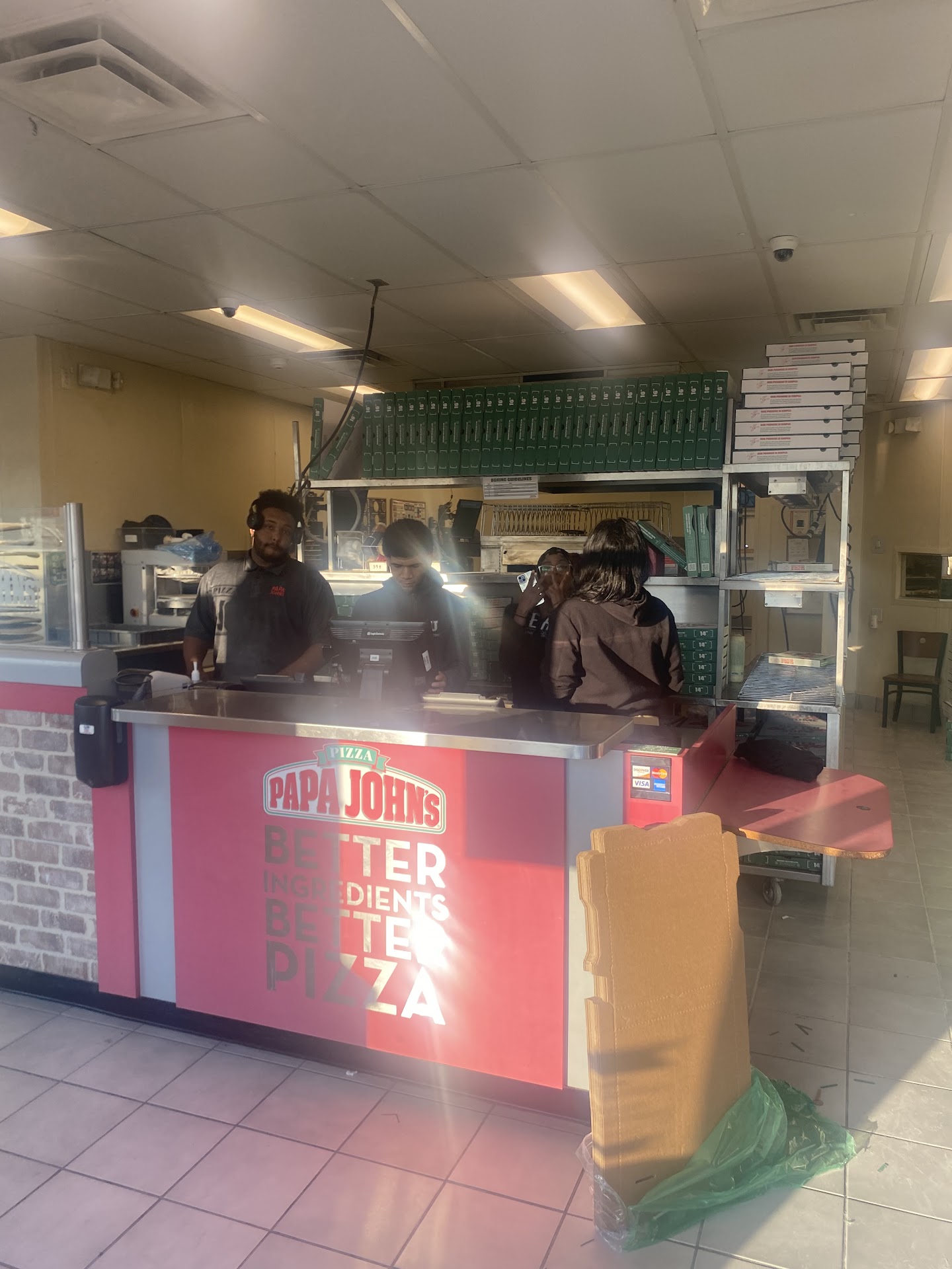 Firstly I would like to say papa johns is my #1 favorite pizza place. I am new to this state. Back home in Texas I’ve never had a bad experience at papa johns. Tonight I went in and the first thing I noticed was how dirty the employees were. They were all covered in pizza dough flour. Even one of the ladies had flour all over her coat which made me wonder if her coat was all over the dough as it was being prepared. Also no one had on gloves and the counter where the pizza dough was being prepared was cluttered and junky looking. Which also made me second guess taking the pizza. I continued with my order and opened the box to my cheese sticks and saw only one sauce. I asked the manager (or who looked as if he were the manager) how much another sauce was. He told me 65 cents. I asked if only one comes in with all the cheese sticks I ordered. He rudely said yes and proceeded to ask me if I want to buy another. I said no I’ll rather buy a jar at the store. But I couldn’t even get all of that out, he rudely talked over me and kept saying thank you have a good night in a rude way. Another employee nice to me which is the only Reason I seconded guessed not to write a google review on this store. I’m an avid reviewer rather good or bad I like to leave reviews on my experiences because I shop by reviews as well. I came home and read the reviews and saw someone else leave a negative comment about the manager. I am not sure if this guy is the manager but he was a skinny tall white guy. I will NEVER return to this location and if it’s the closest one to me, I’d rather choose another pizza place before I order from here again. Also I’ve never had a papa johns pizza look so much like dominos. They also did a poor...