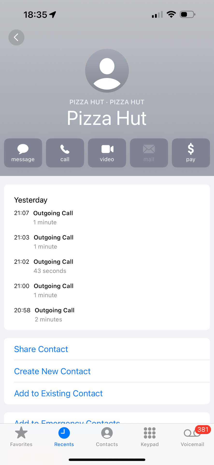 At this point, I think the lady employee said something to the gentleman to convince him to call someone about the issue, presumably a manager. He then spoke to this person on the phone about the situation, and even though I wasn't able to find any information about Pizza Hut's contactless delivery policy, I decided to wait and hear the outcome of the phone call.