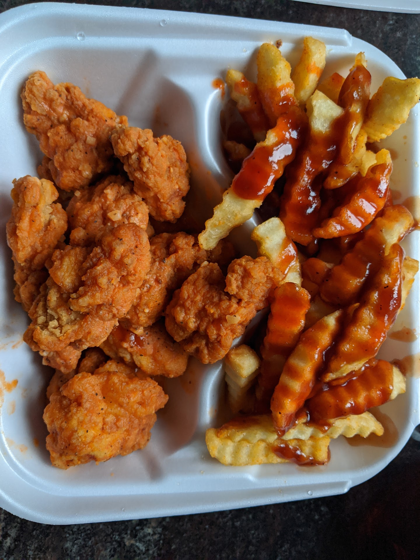 Ā Ā Ā Read more10/11/2024 This will probably be the last time I frequent this place. Chef here! If no one in that kitchen has a ServSafe they shouldn't be back there. Because nobody knew what they were doing. Seems like you guys did some upgrades to the outside but didn't upgrade your register line almost out the door. Got two drinks one was a Sprite the other was a Kool-Aid lemonade mix. Sprite tasted like Alka-Seltzer and Kool-Aid lemonade mix tasted like syrup which they charge an extra $2.75 for. When I was given my food I checked it and the onion rings were still mushy they almost had an attitude about me asking for them to redo them because they were not done. You have to pay extra for sauces barely any sauce on chicken or fries. Fries were not done/mushy. I could have went to Chicken Scratch or Buffalo Wild Wings. There was a older lady in the back playing music. There was another guy on his phone making food! And there was a younger lady who was calling out orders. This place should have been gone years ago. You guys are not putting quality into your food you're just trying to make money especially in the area...