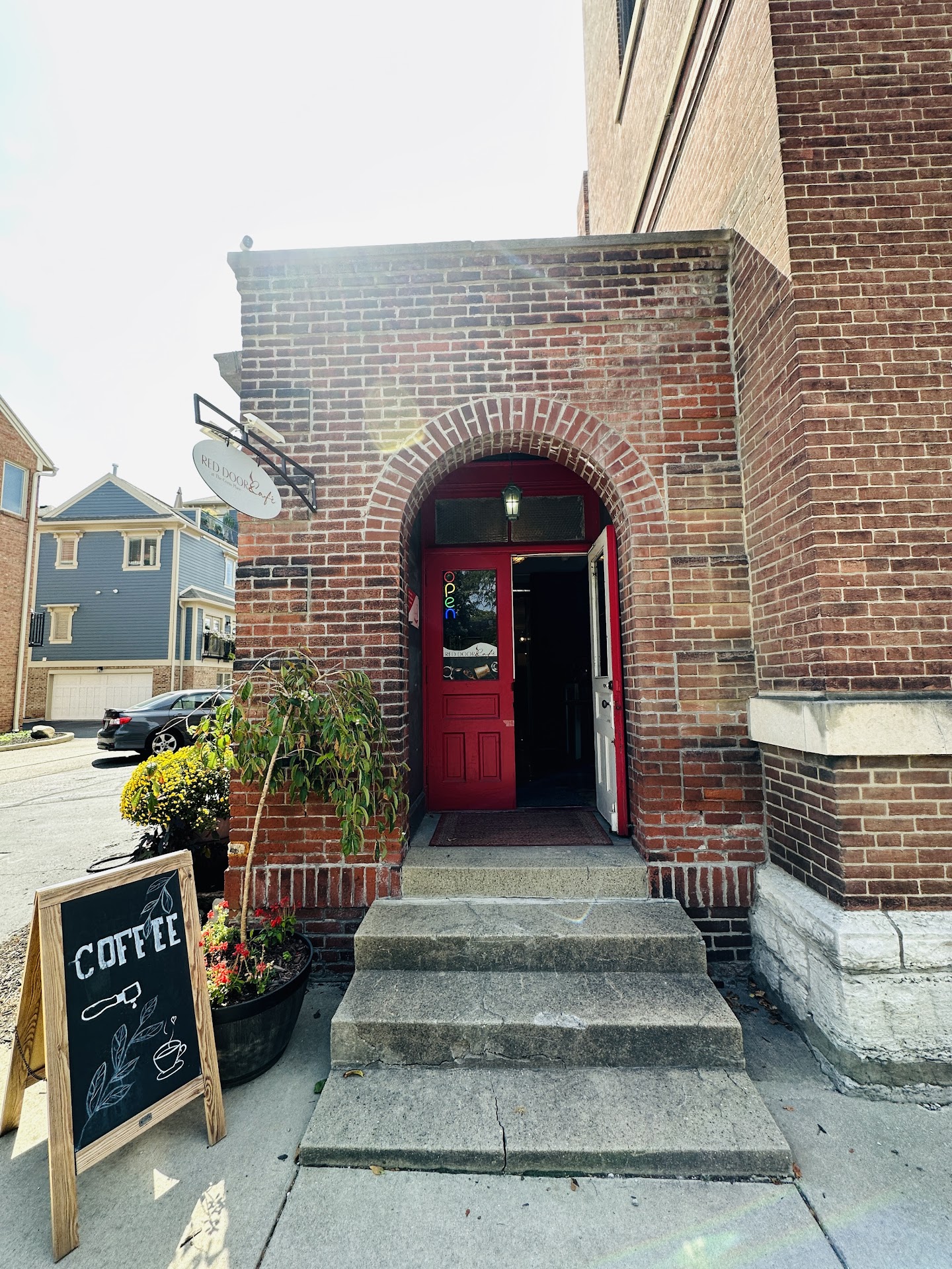 Red Door Cafe has been on my list for a while and I dropped by today needing the extra caffeine. First off donāt get thrown off by seeing a church at the location. This was a church which got converted to a hall for weddings and events later and Red door cafe opened last year. One step in it has all the greenery, warmth and coziness you would crave in a coffee shop. The touches to the unfinished brick wall are so aesthetically pleasing. You see different decor like a king size lamp, boat tucked in each corner. The Americano and orange cranberry scone need no introduction- just the right flavor and touch. Customer service was on point and courteous. Parking is available behind the building, street parking is...