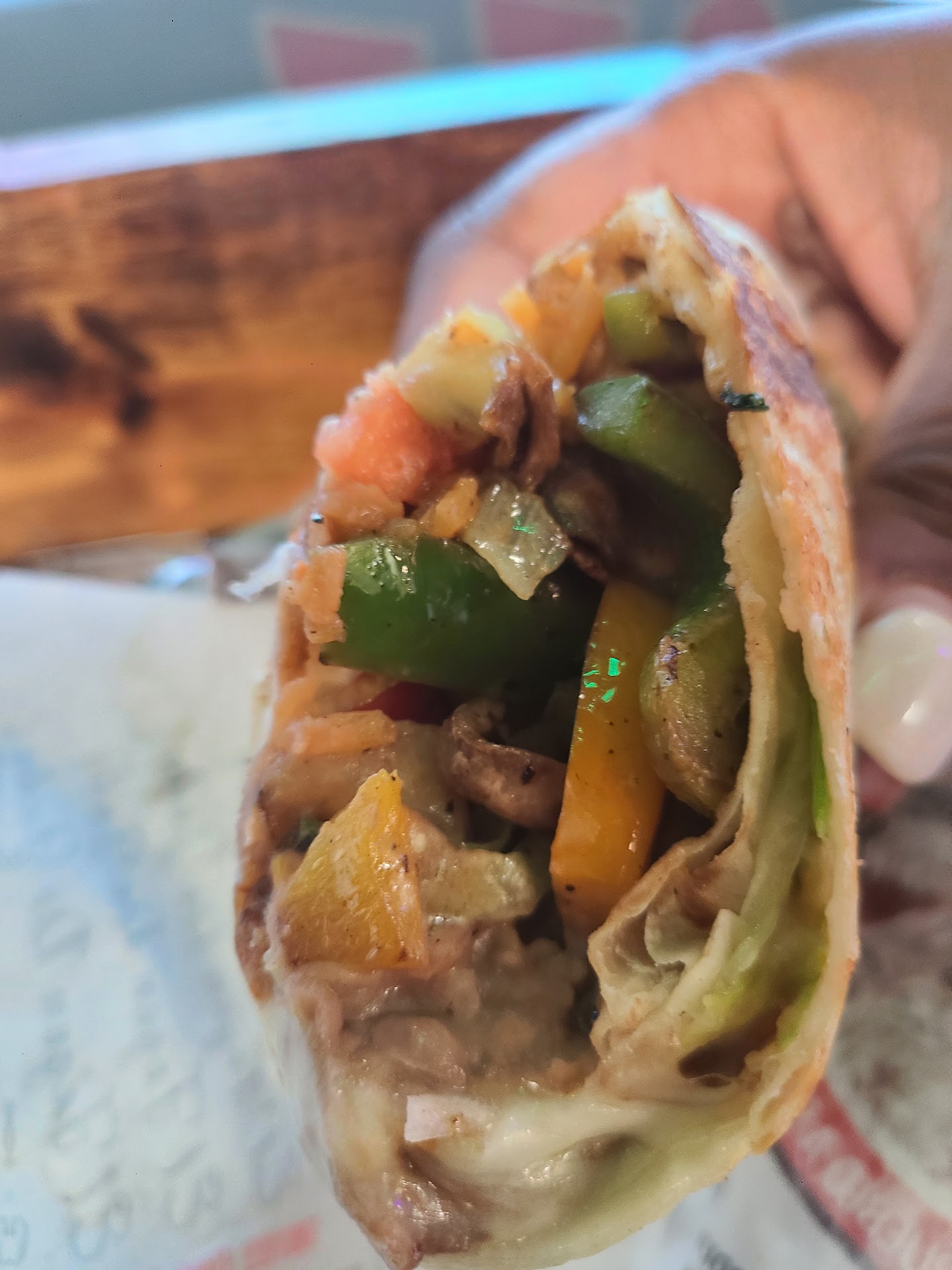 But I won't give them a bad review. Small business. Hope they thrive. Just not happybwith portion size to price ratio for beans rice onions and green peppers. It taste OK if you slather it in Verde salsa. My girl loves this place usually this time doesn't count, she was TOASTED I can't consider her a reliable source...