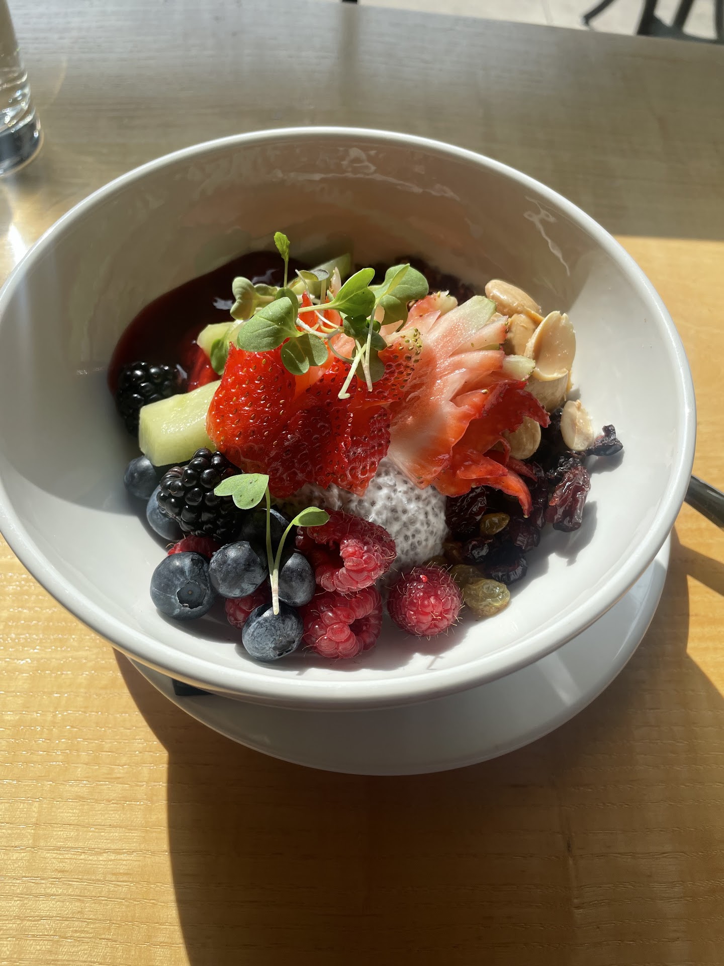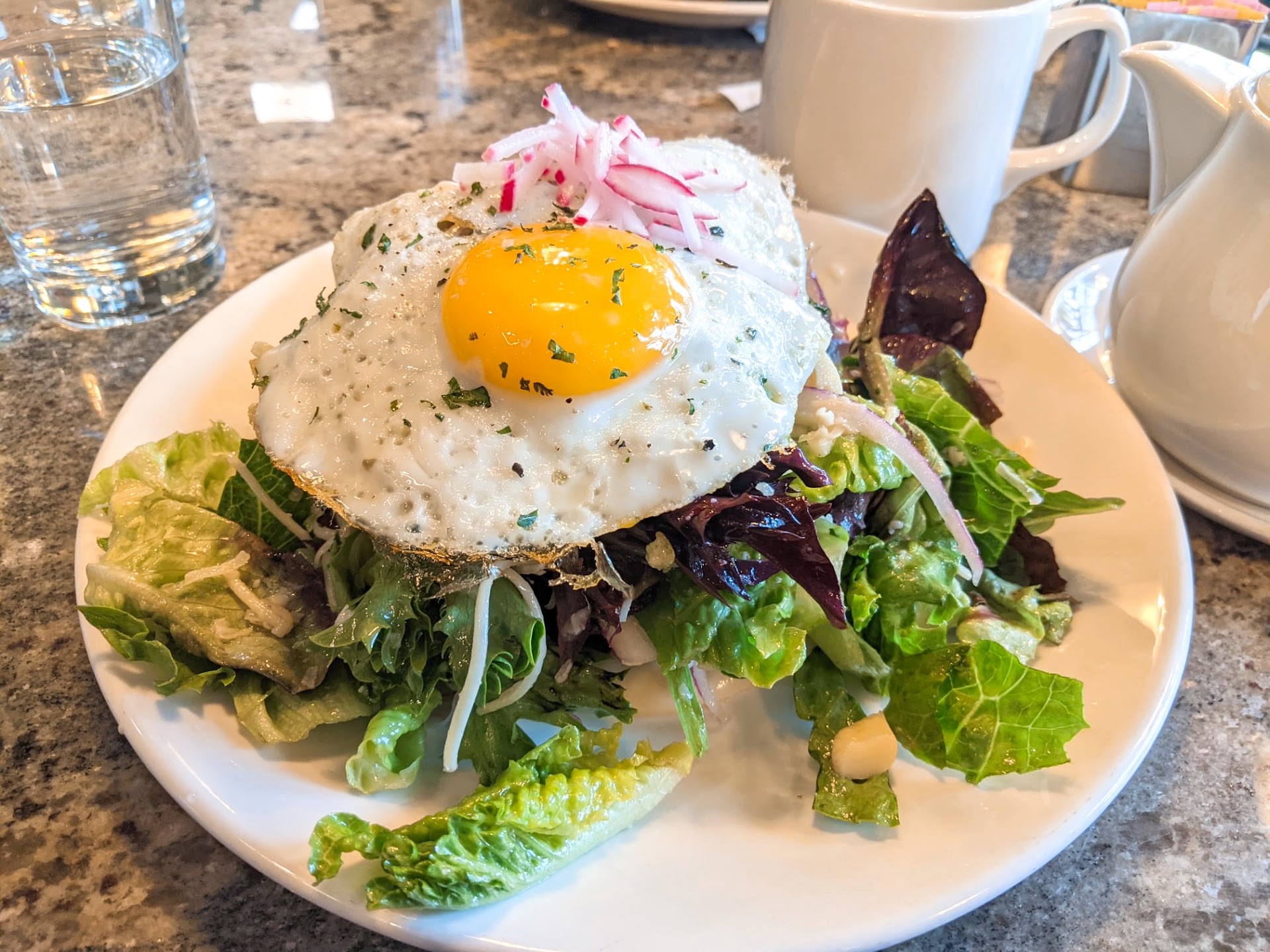 Chicken chopped salad:. The strange thing is, was that it wasn't chopped at all. Lettuce mix was regular spring mix. The chicken was presented as large pieces. When I asked the waiter about it, he said he didn't know. 5 minutes later, the chef came out and asked what was wrong with it. I politely said that it wasn't a chopped salad, if it's not chopped. I was told that's the way they do it there.