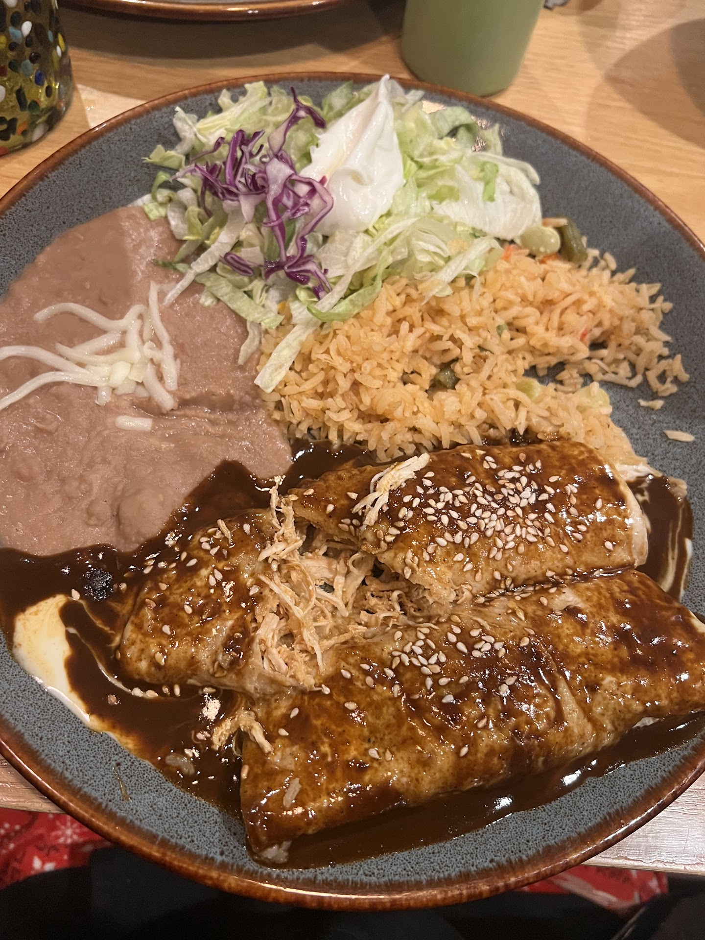 Read moreI'm going to leave 4. I've been eating here for a long time. Always had excellent service and excellent food. Today I took a friend to eat here around 3ish. The gentleman ignored our requests for the combo, I stated I'd pay the upcharge to add chicken to the quesadilla, he brought us only cheese. neither of us ended up eating the quesadilla because it was jam packed with cheese only. I asked for a chicken enchilada with red sauce and ended up getting a beef with mole. Still delicious but not what I ordered. My friend asked for 2 sides of rice with an upcharge if needed, only got one side of rice. My rice and beans were colder than room temp. I kept looking around for the gentleman so we could get a box and our check. We couldn't find him until I looked behind the wall of tables and found him on his phone. I kept trying to get his attention and finally after the 4th time I finally did. I asked him to wait a moment so I could see how much the check was but he took it quick and ran my card multiple times even when I told him to wait because I wanted to ensure I wasn't charged the upcharges for what we asked for and didn't receive. It was the worst experience I've had here and I love this place. Maybe he needs more Training or didn't like the fact we were there. I'm not sure but it was uncomfortable and the most negative experience I've had here which was a shame. I love this place and was so looking...