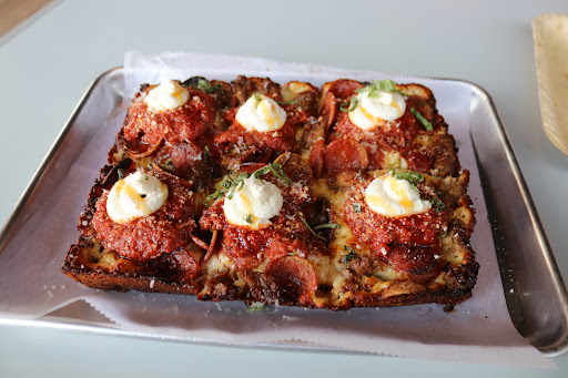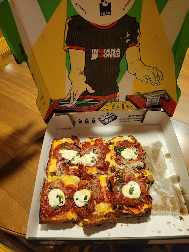 Read moreWOW... crunchy crust, interesting combinations on traditional pizza toppings - huge pieces and so good. I'm not a huge pizza fan but these Detroit style pizzas managed to be filling but not super heavy and doughy. And the ingredients... Really fresh and who has heard of honey drizzled on a pizza? Very little but adds so much! We had 3 pies tonight - 6 small between 6 people and we each got a piece of a different pizza and it was perfect... and walked away with the bill being about $12.50 per person - UNREAL for the quality of the food. The High Plains Drifter is a great pizza with pesto and spicy sausage for anyone who can't do red sauce... The El Jeffe for meat and spice lovers... and there are 2 vegetarian options ... we had one with red and pesto sauce... AMAZING. And the staff was great, having fun - even when it got packed for about an hour - the vibe was chill and friendly... we saw couples, families... REALLY recommend giving this small business, fresh pizza joint a try! Well worth the drive from Broad Ripple to 10th and Rural!! Cute and upcoming neighborhood!! You won't be disappointed! Owner said open Thursday, Fri & Saturday now but adding hours as they add customers... so get on down there - truly, best pizza I've...