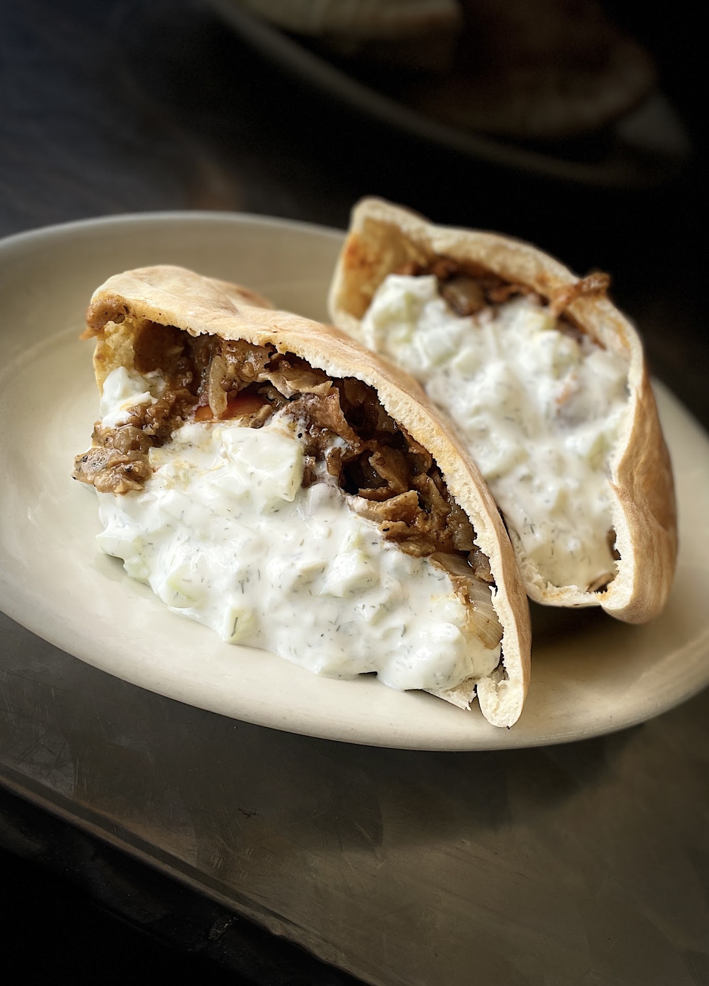 My girlfriend usually gets the chicken shawarma which she has let me try. Smaller chunks of marinated chicken and she usually gets the cucumber sauce. I have gotten the beef shawarma which was on equal ground as the chicken, both were good.