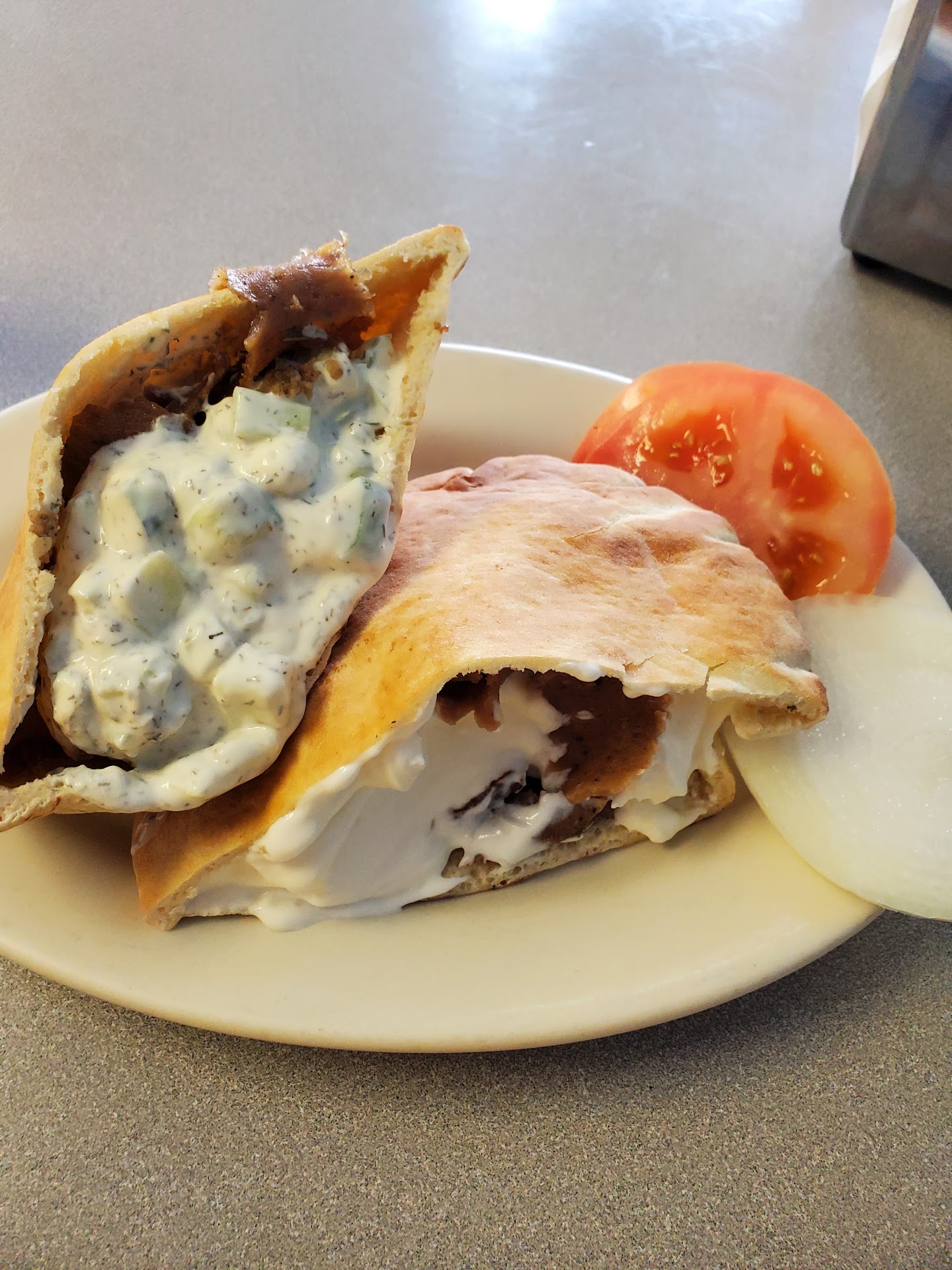 Read moreThe spicy gyros are the best gyros I've ever had, normal gyros were good but spicy was spectacular. The thin sliced meat and spices with the cucumber sauce is simpler than others I've had but it proves simple is sometimes better. It's served inside the pita bread which I prefer.