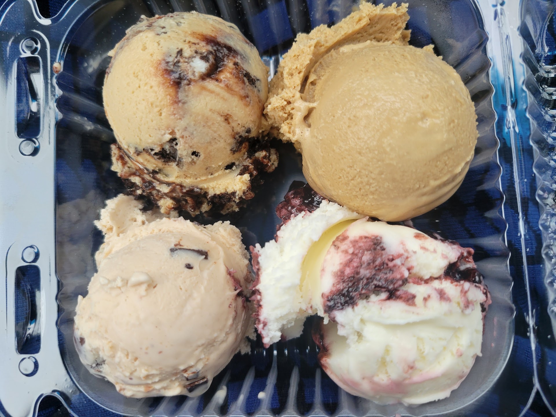 Ice cream flight - pictured from top left: Mud pie (oreo + coffee ice cream) Top right: Turkish coffee Bottom left: Hoosier buckeye Bottom right: blueberry cheesecake