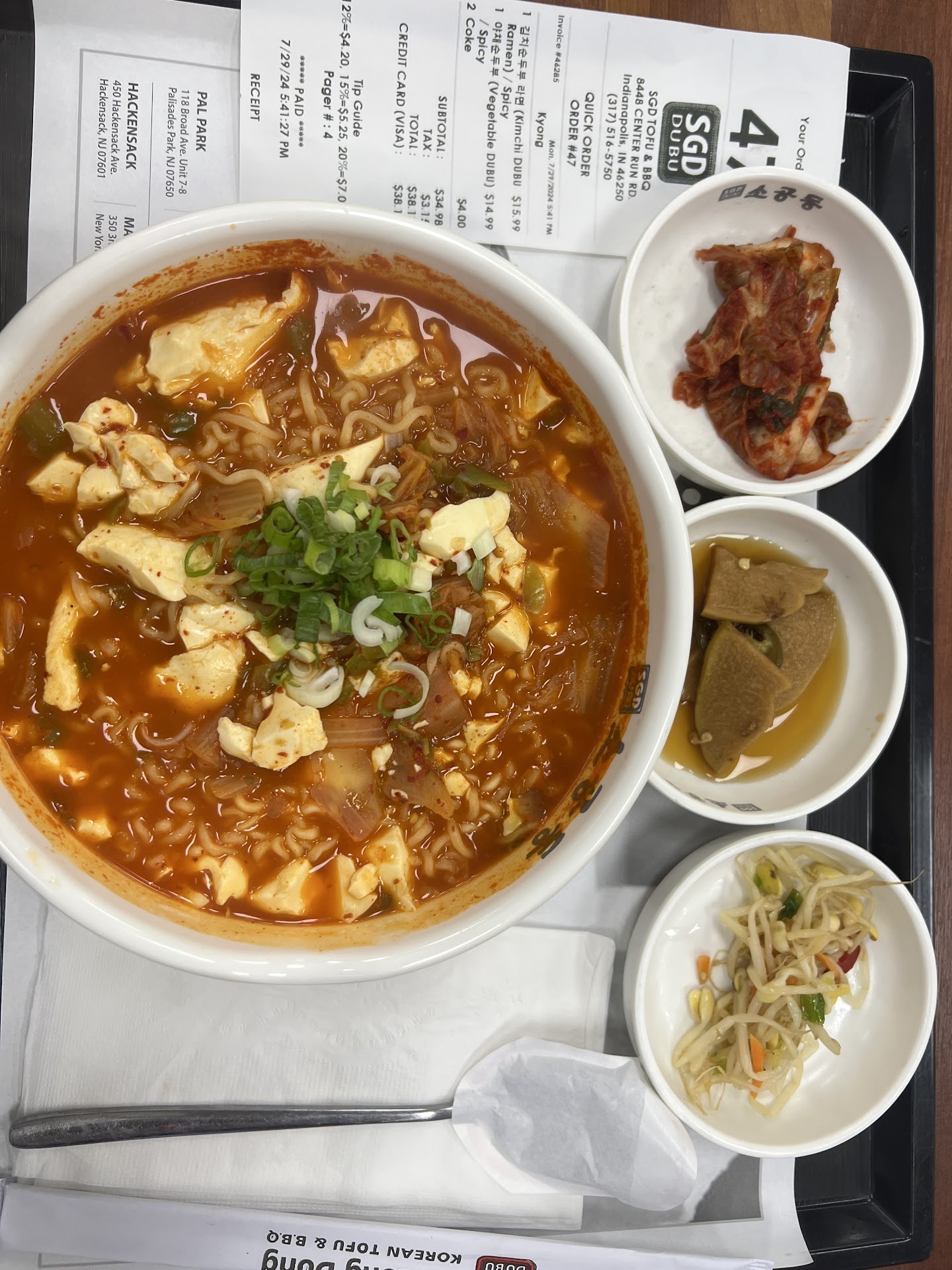 This time I ordered the Soon Tofu Ramen with Kimchi and my friend ordered the Vegetable Soon Tofu Soup. We ordered the hottest spice and it was pretty good and super filling. My friend is vegan so it’s nice that there are options for her to choose from. The side dishes aren’t my favorite. The kimchi isn’t very fermented, the beans sprouts didn’t really have any taste to them, and the other side dish was over seasoned in the sauce.