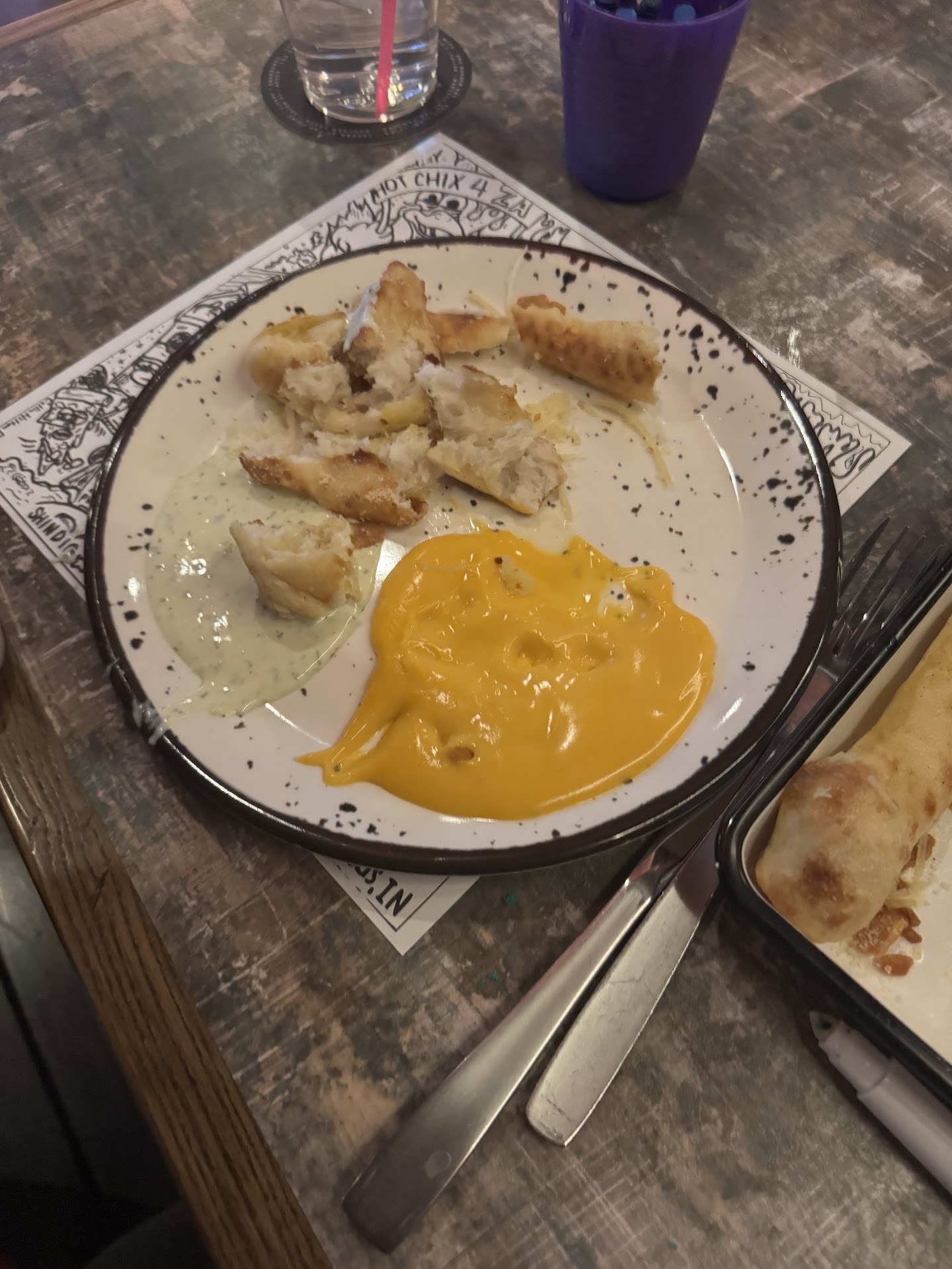 We ordered a variety of dishes, but unfortunately, nothing stood out enough to make us want to return for the food. Everything was decent, just not special. Hereâs what we tried: ⢠Roasted Eggplant + Goat Cheese â Served like hummus, flavorful but an unusual take on a classic dish. ⢠Kidâs Digâs Pizza Pie (Cheese) & Kidâs Cheeseburger with Fries â Standard kidsâ meals, nothing exciting but enjoyable enough for them. ⢠Drive-Through Cheeseburger with Fries â A solid burger, but the beer-battered fries were underwhelming. If I hadnât been told they were battered, I wouldnât have noticed. ⢠10â Butcherâs Pie â Just okay, nothing remarkable. ⢠Garlic Butter Breadsticks with Marinara, Cheese Sauce, and Roasted Garlic Ranch â Decent, but nothing memorable. ⢠Soy Garlic Glaze & Korean Fried Chicken Wings â Both were tasty and enjoyable, probably the best part of the meal. ⢠Caesar Salad â Arrived late, well after most of the meal was finished, which was odd.