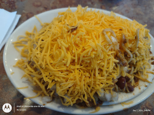First off the waitress Abby was a doll. She was kind patient and a true gem. She was the only one waiting on tables and she did an amazing job. As for the food. Im not a cinnamon in savory food type of person but my bf wanted me to try it so i did. I got the chilli 5 way and the chicken ranch wrap. My bf got 2 chilli dogs and a small 3 way chilli. It was tasty i ate all my chilli Now if i compare it to my favorite 5 way chilli from steak and shake it would clearly lose. But not bad. My bf said it wasn't the same chilli he had from them before. Will i come back yes if Abby is working cause she was a delight. I do wish the food was hotter yes! It came so fast i expected it to be a scorcher but it was just luke warm. I give it 6 out of 10 and Abby get a 10 out of 10. Its 912p and im currently eating the wrap with flaming hot cool ranch Doritos and its amazing. I prefer the wraps over the...