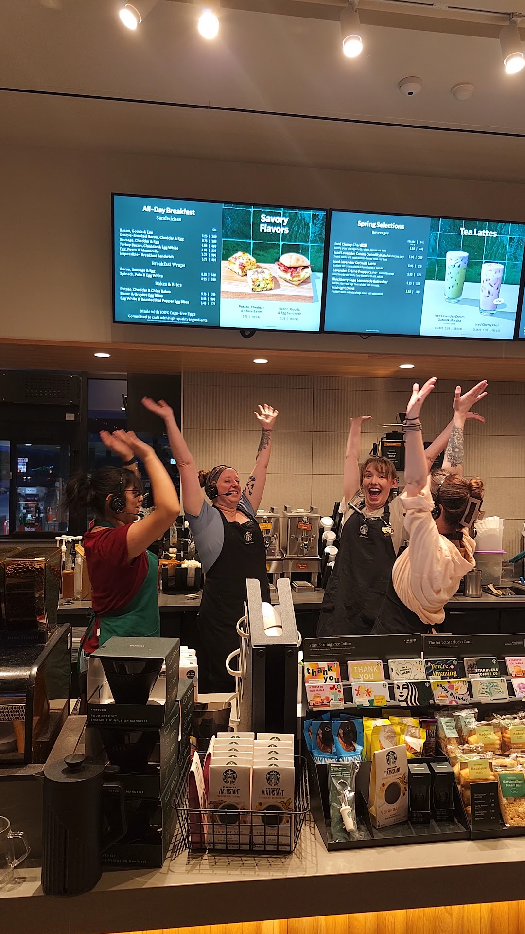 Read moreI have a Starbucks that is closer to me on Emerson but I will drive the extra mile to come here based on these things. The parking lot is not chaotic and the lines flow quickly and smoothly. I often order ahead because I hate feeling rushed and more times than not get stressed out and order the wrong thing or something I didnât actually want. The male barista did not make me feel rushed and actually helped me to make sure I got exactly what I was trying to get and was kind. The female barista at the window double checked to make sure I had everything I needed and wasnât just quickly handing things off so I could get settled and things passed out to my kids and I appreciated that extra effort. She was also kind...