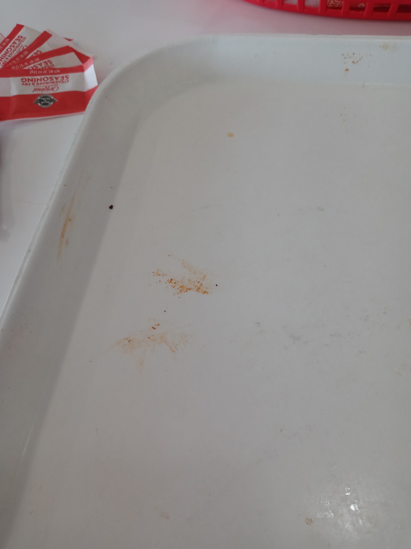 if you’re going to complain about the floor not looking mopped, wash your shoes before you come into the restaurant so you don’t add to the problem of hundreds of dirty shoes walking on the floor in one shift which causes dirty floors that fast.