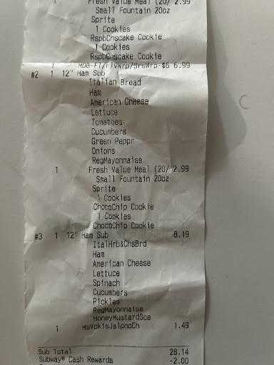 if i could give zero stars i 110% would. this location is AWFUL everytime i go in. service is extremely slow but tonight was the worst experience ive ever had. i placed my order online to use a discount i have. i donāt leave my house for abt 20 min to give time to make my sandwiches especially because i only live 2 min from it. i get there and the man behind the counter is working on another persons order. looks like heās finishing it but is taking his time because all he is doing is talking to him. there is a guy in line clearly waiting to start his order. after about an extra 10 min of being there he finishes his conversation with the original guy and comes over towards the other guy. he looks at him and tells him he has an online order to make & at this point i know heās talking about mine. the guy in line looks annoyed because iām sure he has been standing there much longer than me and waiting to be addressed on the first place. he asks me if im picking up an online order and i say yes to which he responds āiāll make them at the same timeā referring to my order and the other guys order. ok whatever. he then proceeds to only make the guy ahead of me order , not mine which again was placed now 30 minutes ago. once again takes his time because heās chatting with this fella because he recognized him. FINALLY finished this guys order and can make mine. iāve been standing in this subway for literally almost 30 min. as heās finishing my sandwich he tells me i can go ahead and grab my 2 large drinks. i go over to the drink station and start putting ice in the cup & when i look in the cup to see how much ice i put in there i see thereās MOLD clearly coming out of the ice machine. i take the cups and bring them to him and say āthereās mold in your ice machineā he snatches the cups out of my hands and tells me to get new cups. i correct him and say its not the cups, its the ice. i then ask for a bottled sprite instead bc theres no bottled drinks in the coolers and he says all they have are diet pepsi. i have been nothing but nice while waiting for my food but mold in the ice machine was really my boiling point. i grab my sandwiches and tell him no im good and try to leave and he tells me they have mtn dew. thatās totally awesome but not what im asking for whatsoever. i grab my sandwiches and walk out. get home and one is missing the bacon while the other wasnāt toasted like instructions said. do NOT go to this one off of hanna ave. go a little down the road off of national ave right by the walmart and get your sandwiches there because they work faster, harder, and clean the store. wasted my...