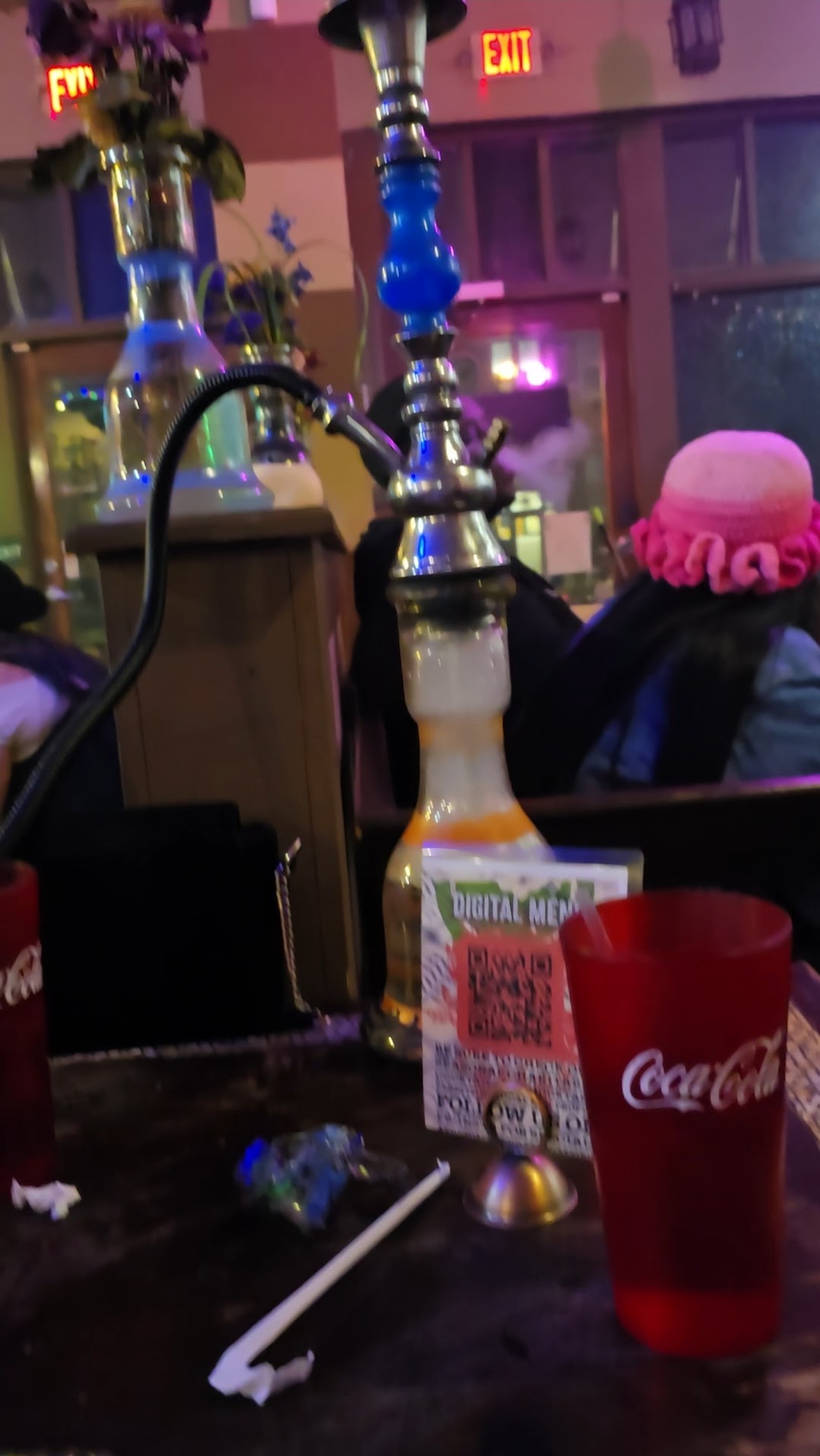 Read moreI’ve been here before and had a pretty good experience with my partner. I wanted to come back and bring a few of my friends to try it out and it was a disappointing experience. We had to wait in line for a table which is absolutely no problem, it was a busy Saturday night. There were a couple empty tables available that had yet to be cleared off. We were waiting for about 10 minutes, in the way because there wasn’t much space to wait, before any of the staff acknowledged us. Once someone did she was really great about getting a table cleared off for us but before she could even wipe the table down a couple that walked in behind our group jumped us in line and took the only large table available for my party. The server didn’t even acknowledge this and still took their order and said nothing. We were then told that we’re were in the way and needed to move, so we went ahead and left. It was super disappointing because I was really looking forward to show my friends my favorite hookah bar but after this service experience I will not...
