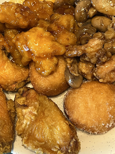 The atmosphere is fine, thr bathroom toilet is so nasty inside of the bowl. The peanut chicken is always old and without a lot of sauce. The cups are small the last few times we have been there the food seems to sit for a while so I'm taking longer to be able to make then eat a plate of items that I want. Last time I just left a whole plate of food and left it wasn't good. The Rangoons are tasty when hot and fresh now for like a year they teased freezer burned so we stopped coming. They are fresher now and you can taste the difference. The salmon or trout is tasty, but the black pepper chicken has changed from how it used to be. It was my favorite but now the cooking method or the breading is hard and doesn't seem like chicken it's more cracked fried batter, not saucy and tasty like it used to be. The sauces including The tartar sauce sits out so long it looks nasty and slimy in the cup on the counter. There isn't enough sauce on some dishes so they add water to keep them from drying out so The flavor is either in the water or The item remains dry. The Mongolian pork tastes like a cigarette was dropped in them because the liquid smoke is so heavy, they do that to the lo mein from time to time. The ice cream machine was dirty below both times in the last two weeks so I pointed it out that it looks like mold there to the staff. The food turn over is pretty slow some days but it's fine in a quick pinch. The decorations on the ceiling are very dusty you can see it sitting on them like a blanket so I'm careful where I sit. I can find a few good things in there like the fried zucchini is really good when it's fresh. I just need to find a busier time to go when the items are coming out more often I supposed. Overall it's just okay, it works when I don't feel like driving to my favorite one across town. I have asked for several items to be refreshed at times but even after staying an hour and items don't come out then I just eat the Rangoon and drink some pop which isn't carbonated enough for me but I feel leaving unsatisfied each time. So I won't be back anytime soon I gave it four chances once a week for the last month, time to...