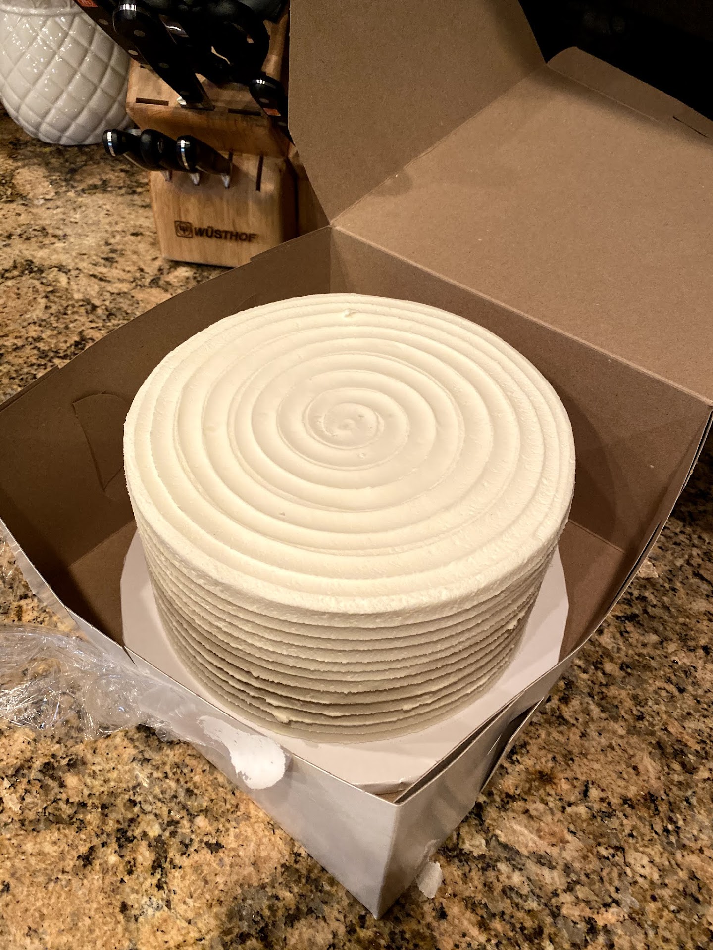 Also frustrating because they had told me that they would put the cake in a box and wrap it well to keep it fresh, but when I picked it up, it was in a box smaller than the cake and they had just slapped a piece of loose saran wrap on the opening with tape.