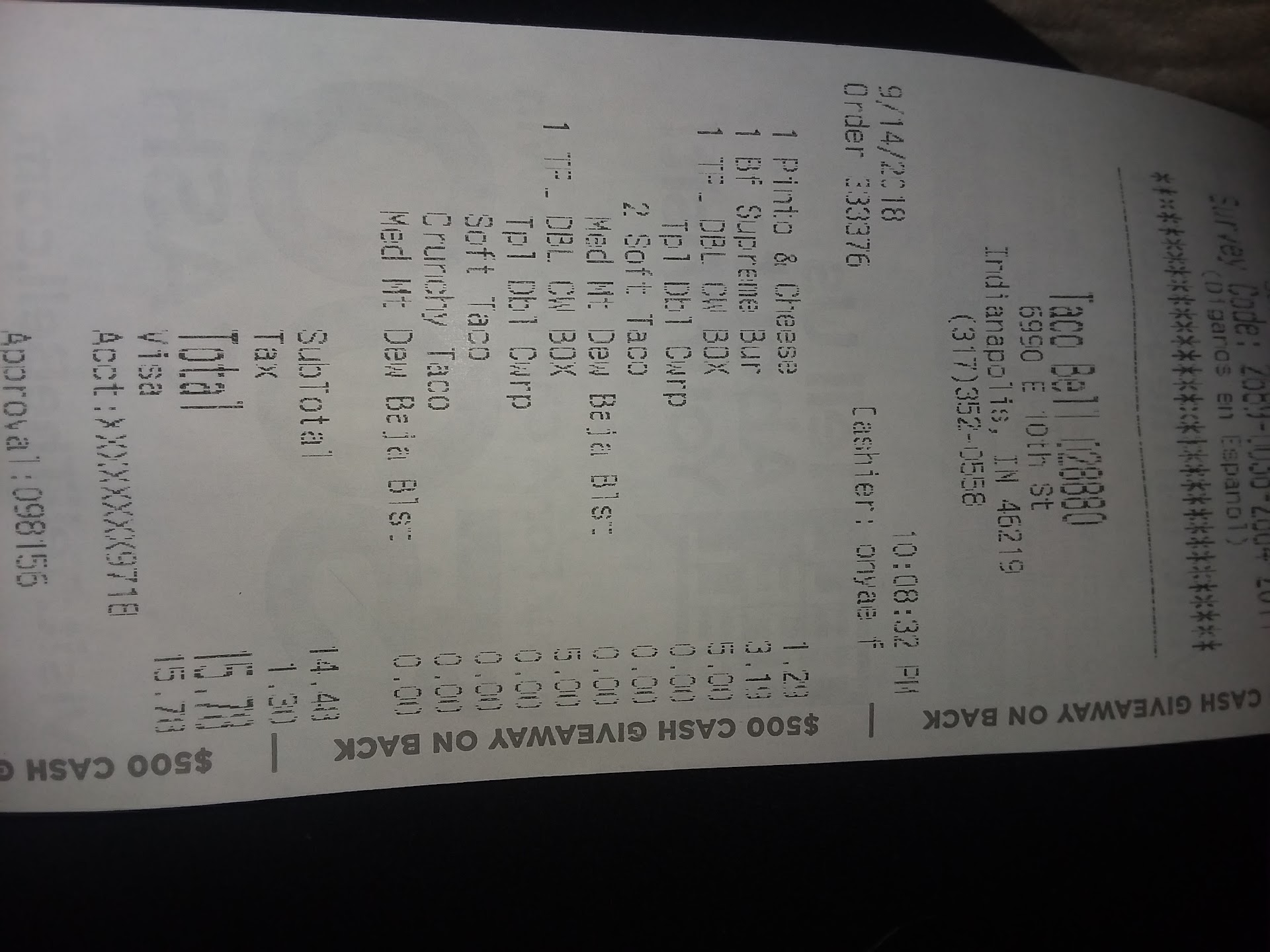 After receiving ridiculously terrible customer service I came home to find that the chalupa I ordered first was not only missing from my order it was not on the receipt but WAS on the screen when i was trying to make sure they got everything.. I know this because it was for my wife and was the only thing I knew i wanted when beginning to order. i had to think about the rest.. after nicely explaining this to the female manager @ the Taco Bell store at 6990 East 10th Street Indianapolis Indiana 46219 on august 20th @ 1:26pm on the phone, she said the only thing she could do is tell me to come back and buy one and that im lying about ordering the chalupa and was attempting to con Taco Bell out of a $3 chalupa if it is even that much after spending about $17 just before. I explained to her that the mistake was made buy them when they accidentally deleted the Chalupa from my order which only gave my wife the option of eating a single soft taco and I wood now have to drive back and deal with their terrible manners and customer service and for all of that I as a customer who just spent seventeen should not have to pay 4 a $3 chalupa. The manager calling me a liar and lying to me about her ability two make up for the mistake then hangs up on me.. no company who prides themselves in having any kind of customer service should continue to employ a person with such disregard to the integrity and appreciation of...