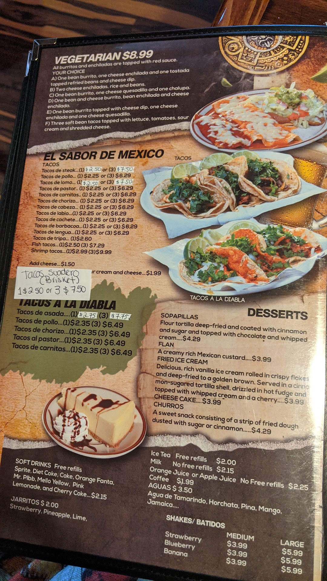 They're not the cheapest, but 3 tacos for 11 or 12 bucks, they're definitely worth paying a little more than you would at a truck or taqueria, which I don't think this place considers itself to be. The menu is mostly strip mall tex-mex with enchiladas, chimichangas, and other assorted combinations of meats, tortillas, and usually white queso sauce, with a few seafood and steak options. I'm sure it's all good. But you're not there for any of that. You're there for what they named the place after, tacos a la diabla, the best tacos I've ever had. I won't wait so long to go...