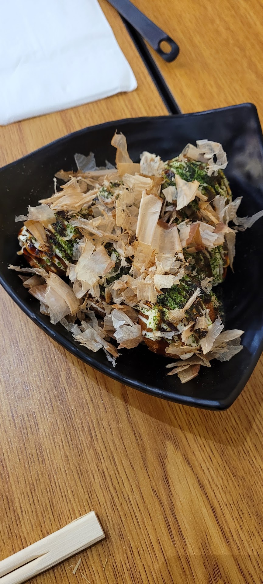 The Takoyaki balls were warm, goey texture delights with a generous amount of bonito flakes. The Chicken Katsu was crispy and cruncky on the outside and impressively moist on the inside, and the curry flavor was multi-faceted and had just the right amount of spice that is more warm after eating the dish for a bit. The boba teas were made with care and came out looking beautiful. I loved the texture of the tapioca balls with the taro mixed together but will definitely try what our server recommended next time. The ramen unfortunately was bland and the pickled veggies in it were not good. The pork might have been sitting out too long or not cooked well. I actually felt a little sick later from it unfortunately. I will not get ramen from this location again.