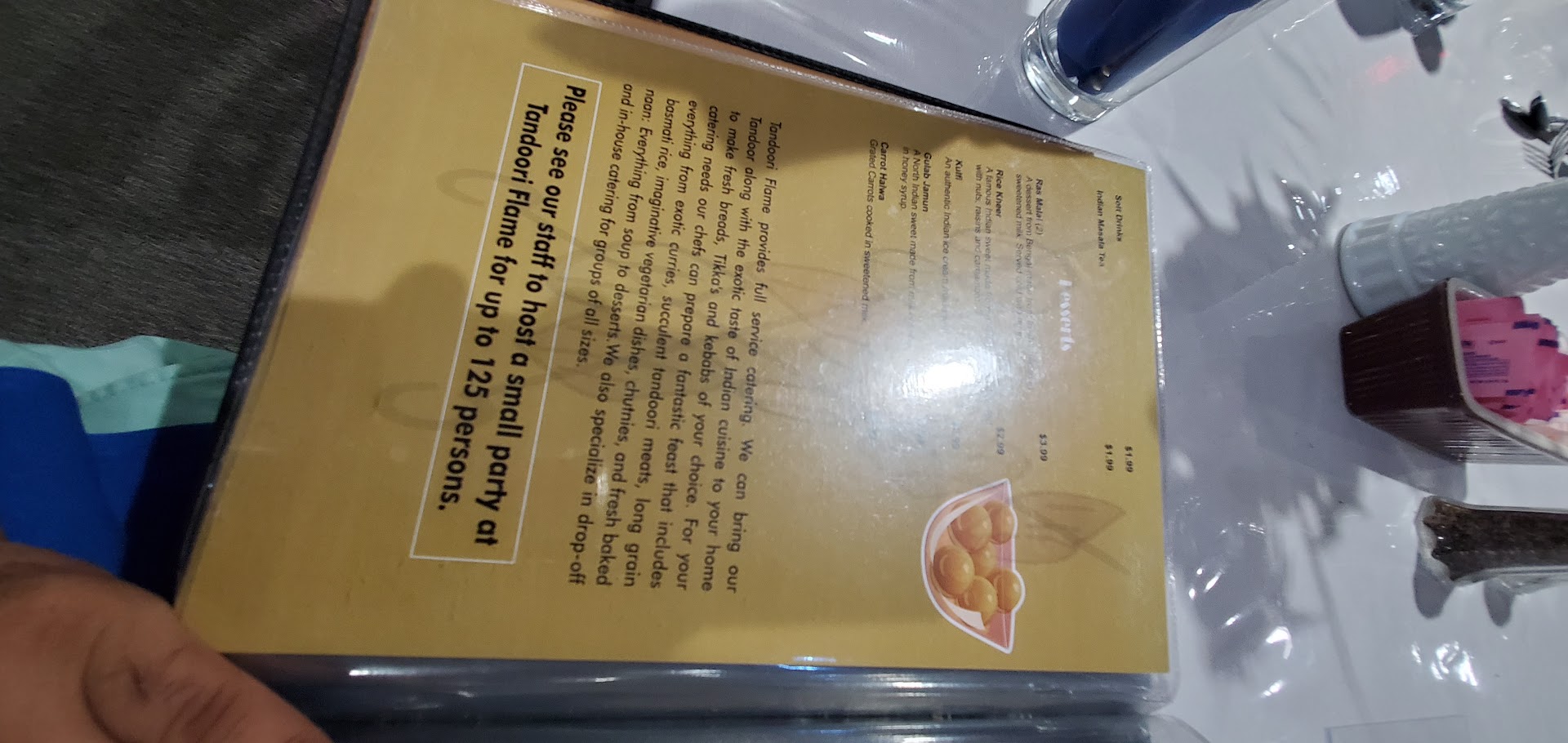According to the reviews of others, Tandoori Flame comes highly recommended for Indian cuisine. I suppose that I will just have to take you all at your word about it. Here's why, my family and I arrived at 19:31 on Father's Day. The restaurant didn't appear to be busy, but we waited for several minutes to be greeted and seated. Another 7 minutes goes by before the server acknowledges my family and our drink order. We finally receive our beverages and the server was gone again. She was busy, I understand that, but to leave us just sitting there with no indication of when our meal order would be taken gave me a strange feeling. Finally, our order was taken. And, then we waited and waited and waited for our meals to arrive. Well, after an hour and two minutes had passed, there was still no service to our table. I supposed that we were forgotten. But, the large party that had come in almost 30 minutes after we were seated was receiving service! Forget social distancing, we were all crammed into one area of the quite large building. And, still no food. We decided as a family to leave this restaurant and take our business elsewhere. I find it very interesting that when I approached the server to inform her that I was leaving and that I was paying for my cup of tea, she stated that our food was almost ready, she thinks. It goes without saying that I won't ever attempt to dine here again.