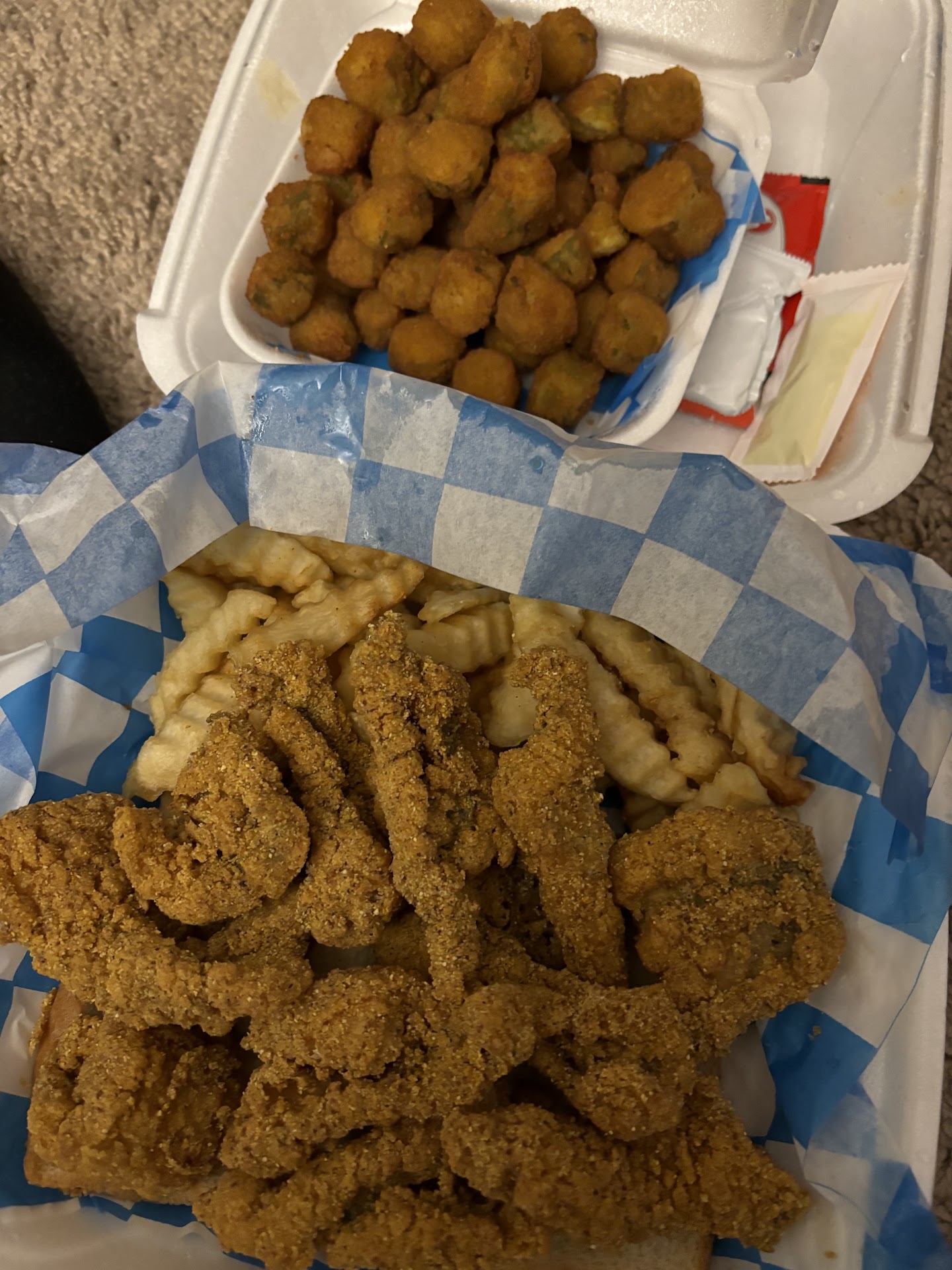 Read moreThe food and service were wonderfully delicious! Although it isn't technically a dine-in, there are small tables that can be set up that can be used as individual seating. The owner and her staff were very accommadating and checked on us often. It's very clean as well! If you love fried catfish with corn meal breading and seasoned so perfectly, friend green tomatoes, đ crunchy french fries đ and hush puppies yum yum and fried jumbo shrimp đŠ this is the place. I am trying to be more health conscious so see if they will use fresh oil for you order, it will be worth the wait! There was so much crunch.. this is grand ma's cooking!! I'm a eat what's on your plate eater and I was full 1/2 way through. I wonder if they cater? I...