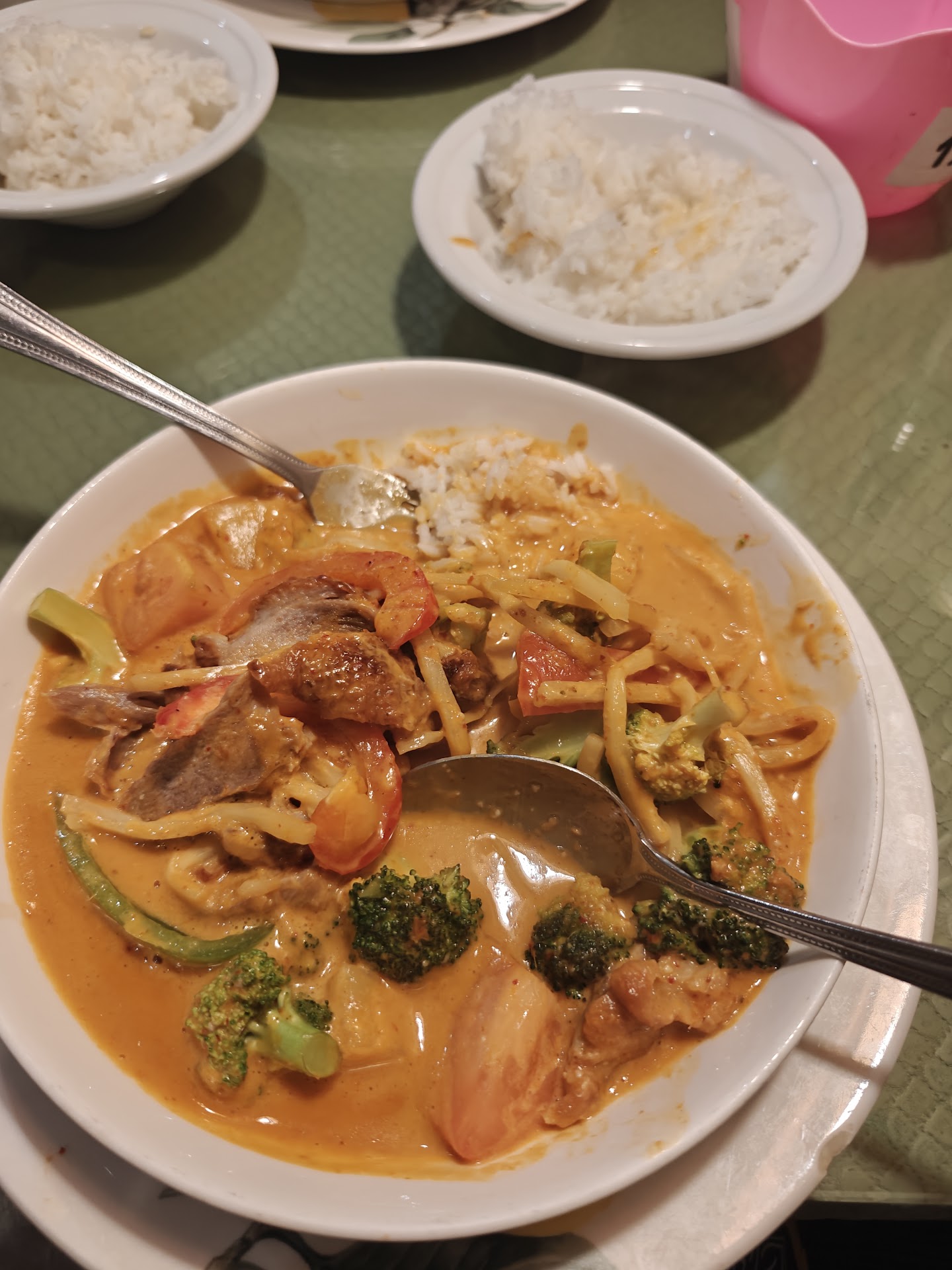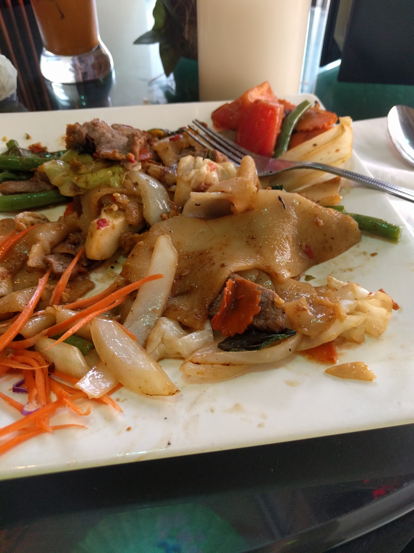 Read moreGood service. However the food was sub par. The salad wraps (although good size) annoyingly fell apart with each bite. The shrimp inside was small, limp and lackluster, and the chicken was dry. The fish sauce was weirdly thick and sweet, almost like honey…as if sugar or honey had been added to it. The green curry was also oddly sweet, as if sugar had been added to it. The meat portion (chicken) in the curry was minimal and overcooked. There was an overwhelming amount of chewy large cut green beans in the curry and the other vegetables were cut small and overcooked. The white rice was a bit chewy and it was clear based on the golden color of some of the rice, that it was either old or scraped from the bottom of the rice cooker. I suggest management spend some time at other Thai restaurants and make some changes to their ingredients and cooking methods. You should be able to taste the flavor and enjoy the texture of each component of a curry. The sweet overpowers it all so much that you can’t even tell there is (or should be) coconut milk...