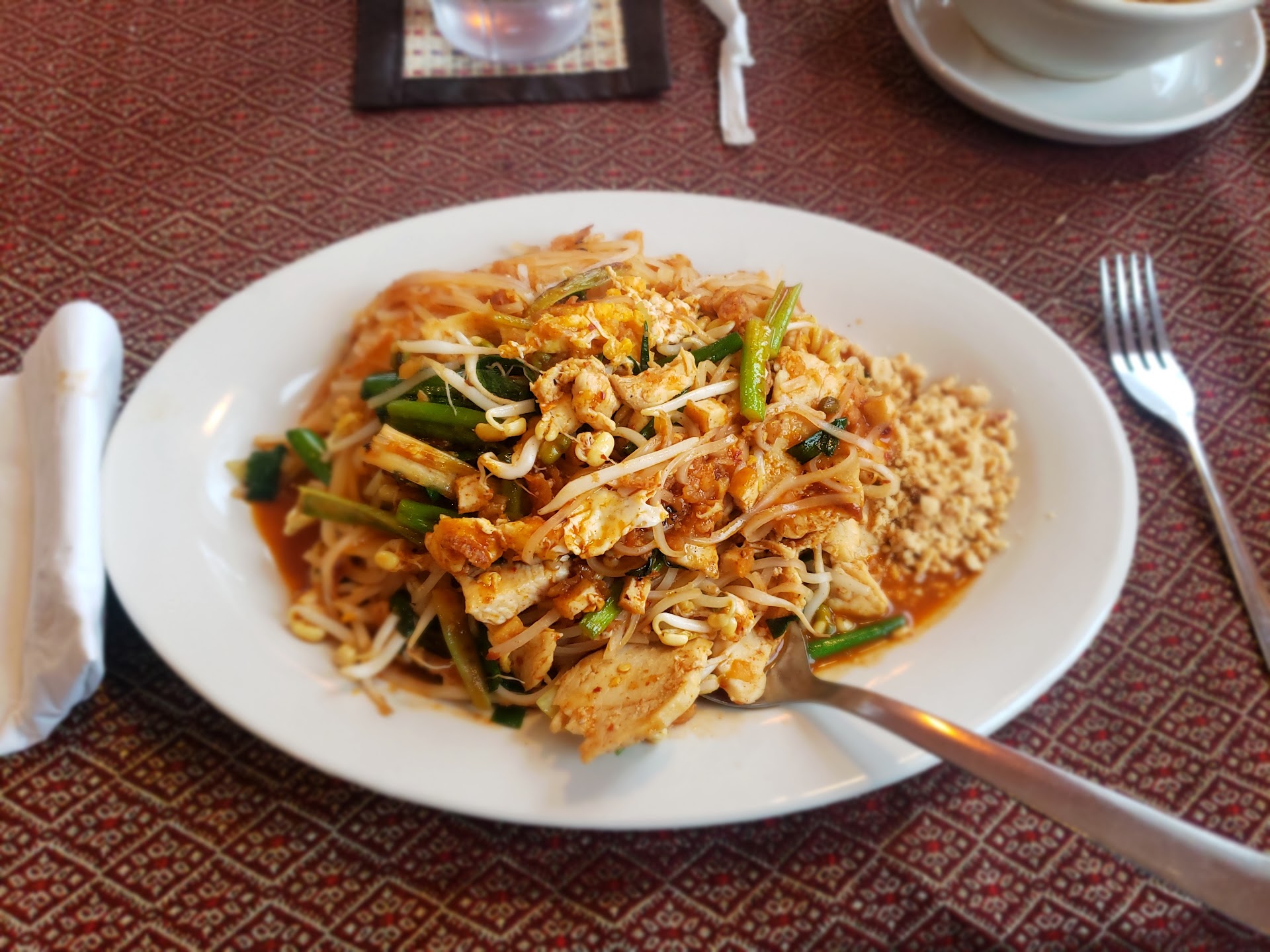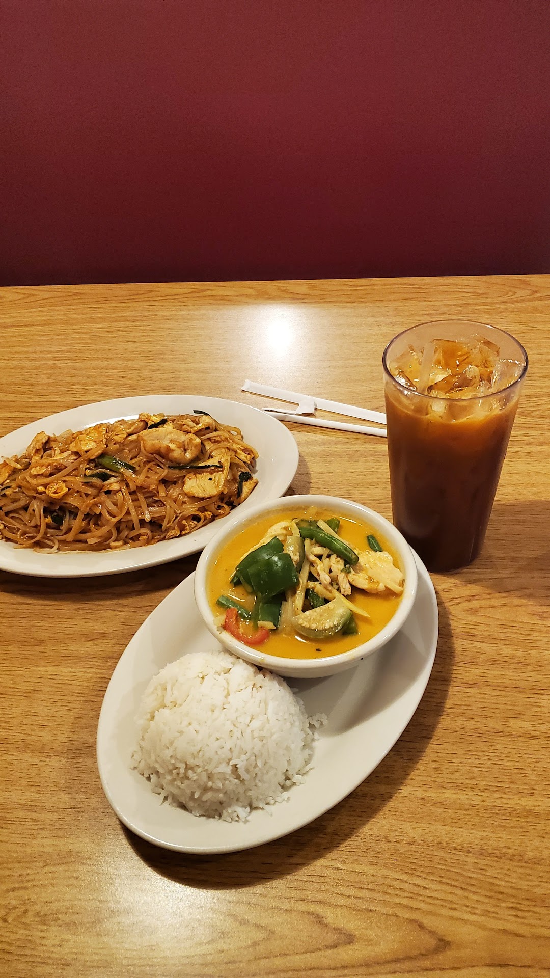 The food is the attraction here. I had the entire restaurant to myself. It seems like most if jot all of their business is now uber eats/door dash. I had thai iced tea, Chicken Phad Thai, and red curry chicken. All medium spice. When they arrived at my table it was a pleasant fragrance. The phad thai was delicious, not overwhelming in tamarind as some have been. Very nice flavor balance. The red curry was very pleasant and they had the option for a half batch. I love the combination of phad thai and red curry and I think it needs to be offered as a dinner combination on all menus. I have left overs for tomorrow lunch. The wait staff seems to be used to having take out orders. Asked if everything was OK twice and did not come back when I was finished to see if I needed dessert or a to go box until I called across the restaurant for it. I will be back for the food. Service doesn't play a big part in my dining experience, for me it is all about the flavors. The flavors make this restaurant a winner. Will be...
