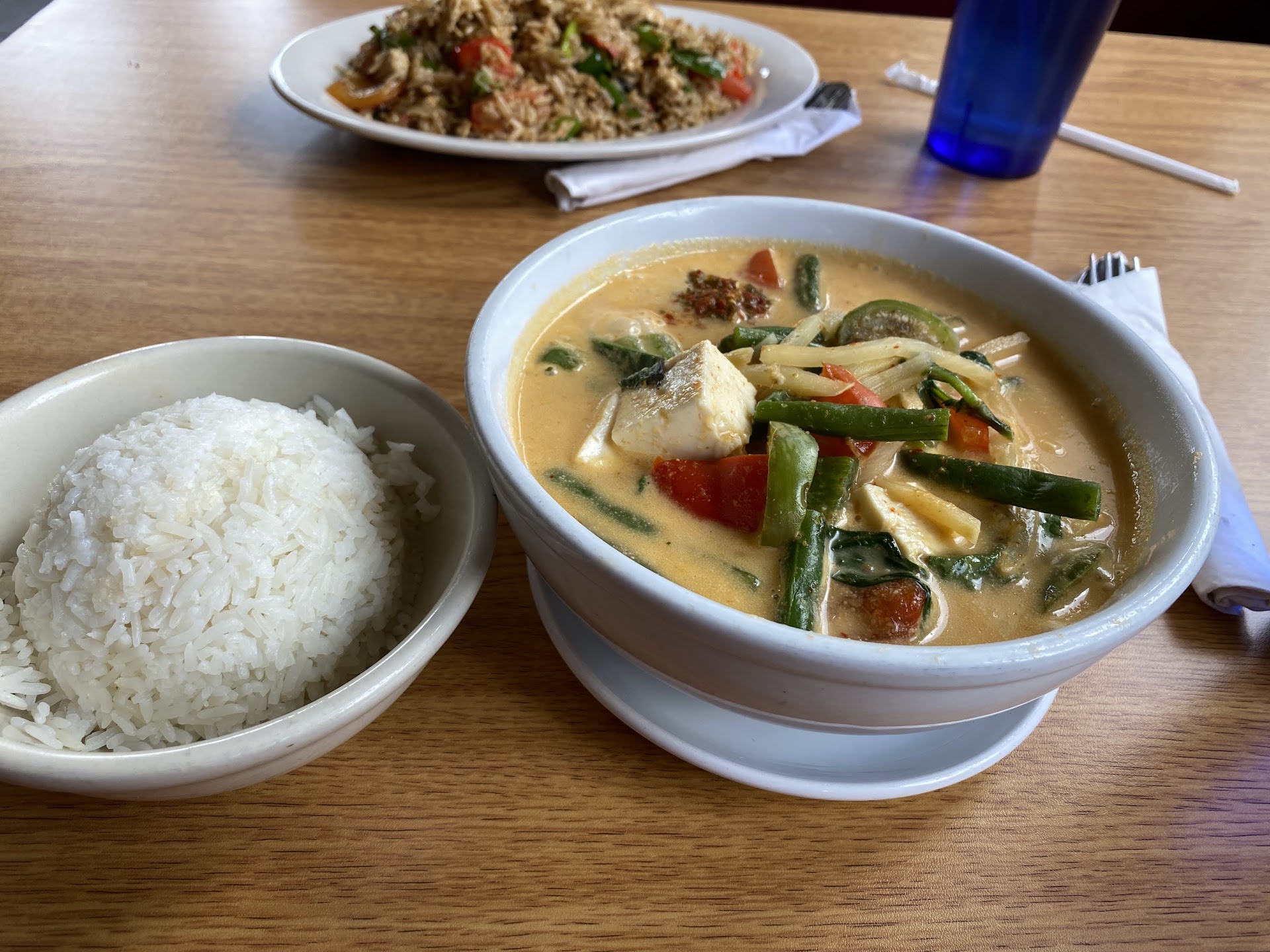 Read more3.5 ⭐️ rounded up. Had the Penang curry with chicken. It’s my go-to Thai dish - that or fried rice with pineapple and chicken (tropical fried rice it’s called here). Service and staff were friendly, courteous, and attentive. They have table-side checkout with Clover tap-to-pay - this is a big deal for me - thank you for having this! I did not photograph my food. Simply chose not to do so. Bathroom is in need of updating: sink sprays to one side, paper towel dispenser is empty/broken, door handle allows someone to peek through on you, 3 soap dispensers including a hand pump one on the sink. Otherwise is clean. Overall, is worth a visit. I’m curious how busy they get. It appears as if there’s been struggles over the years to be able to reinvest on the finishes and fixtures. Go, have a dish, support local and...