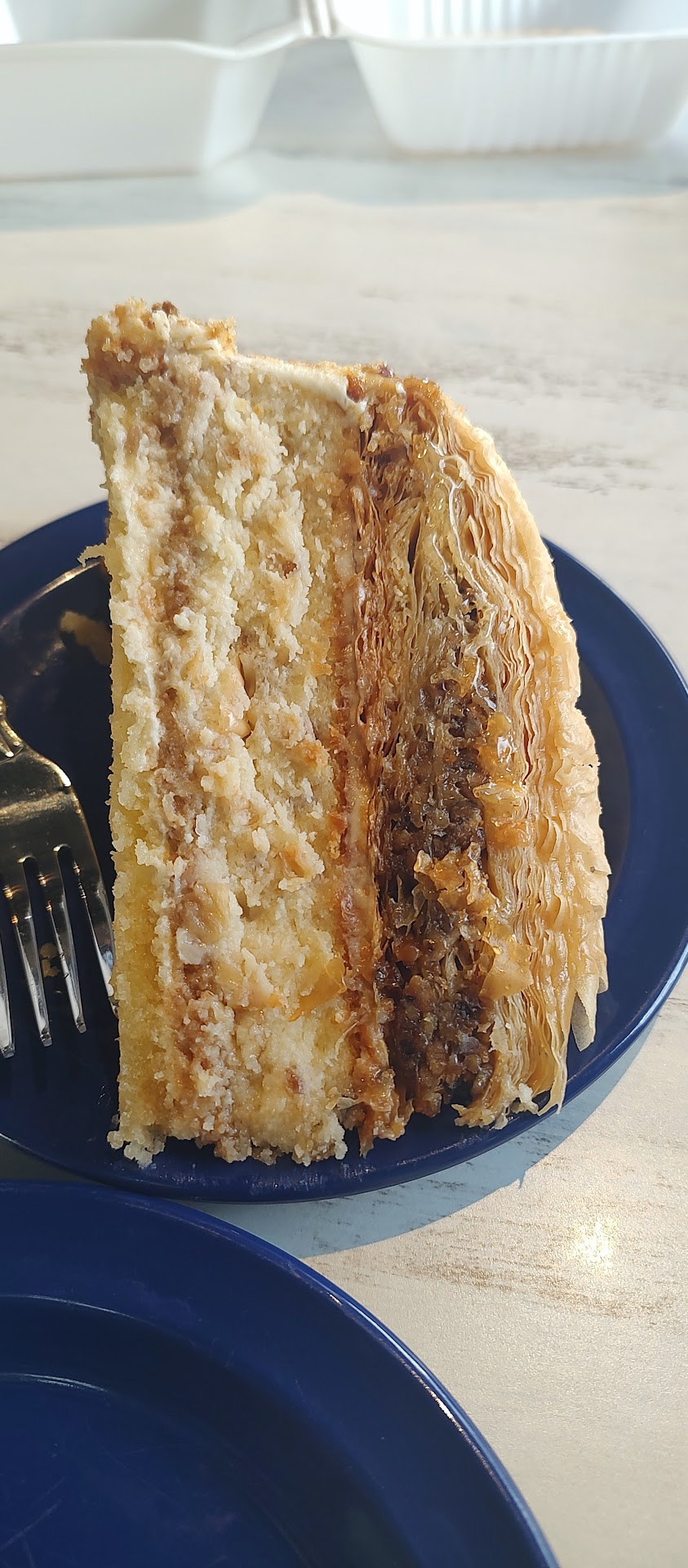 There are ten dinner entrees. I had hoped to find lamb chops but found none. There is no lamb other than the gyros appetizer which has become almost as American as a ham sandwich and can be found anywhere across the city. There is a pork chop entree, 3 seafood, chicken or pork kabob, dolmades, bell pepper stuffed with beef/rice and a vegetarian 'briami.'