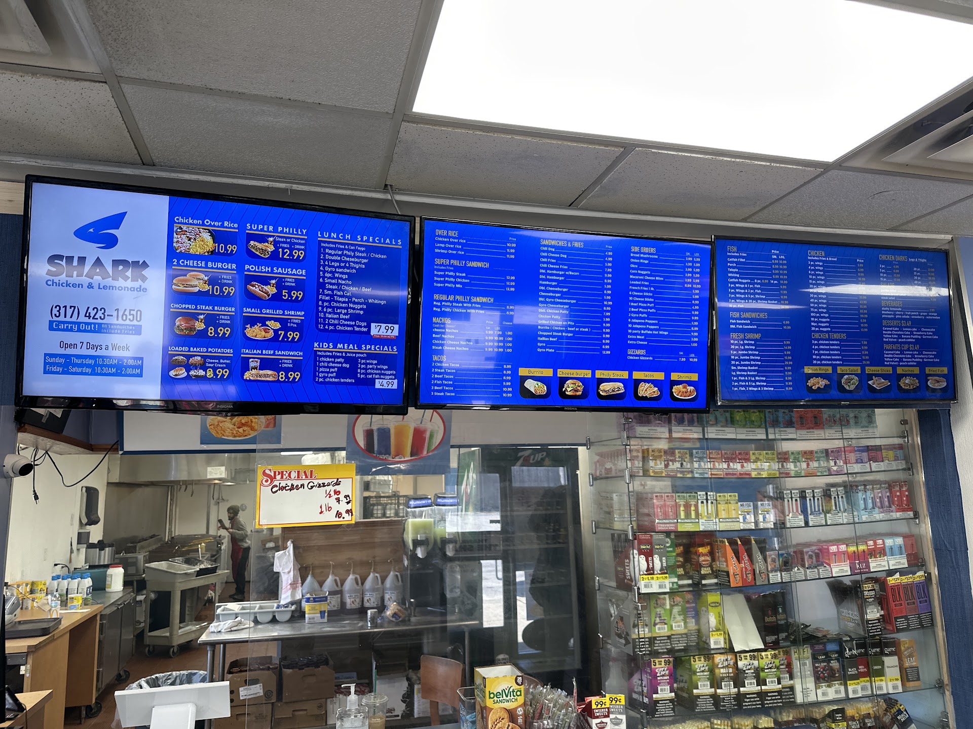 Should have never went in. Service was quick. Food was terrible. We ordered 10 pieces of fish and they weren't quite done and even after cooking them longer there was a weird taste. Many if the drinks in the cooler were past expired..they expired in March 2024 and we are in May. This makes me uncomfortable because if the drunks in the public view are expired what's going in inbthe back. All we want is some...