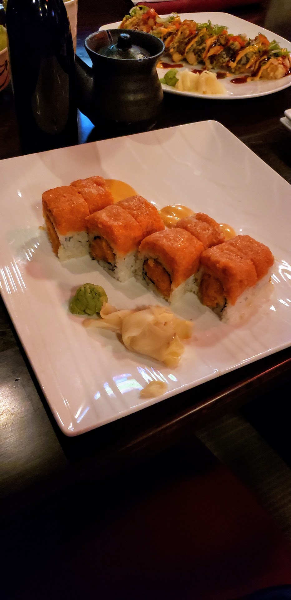 Read moreI don't like leaving bad reviews, I really don't, but I feel like I have to this time. The 3 of us went (myself, my partner, and our adult kid) and ordered crab rangoons, a 2 piece pork egg roll, and our kid had teriyaki chicken while we ordered the Volcano roll, the sweet potato roll, and the Spider roll. The rangoons were fine- a bit sweet, but whatever, they're rangoons. Our kid was somewhat nonplussed by the egg rolls, but didn't have any issues with them.