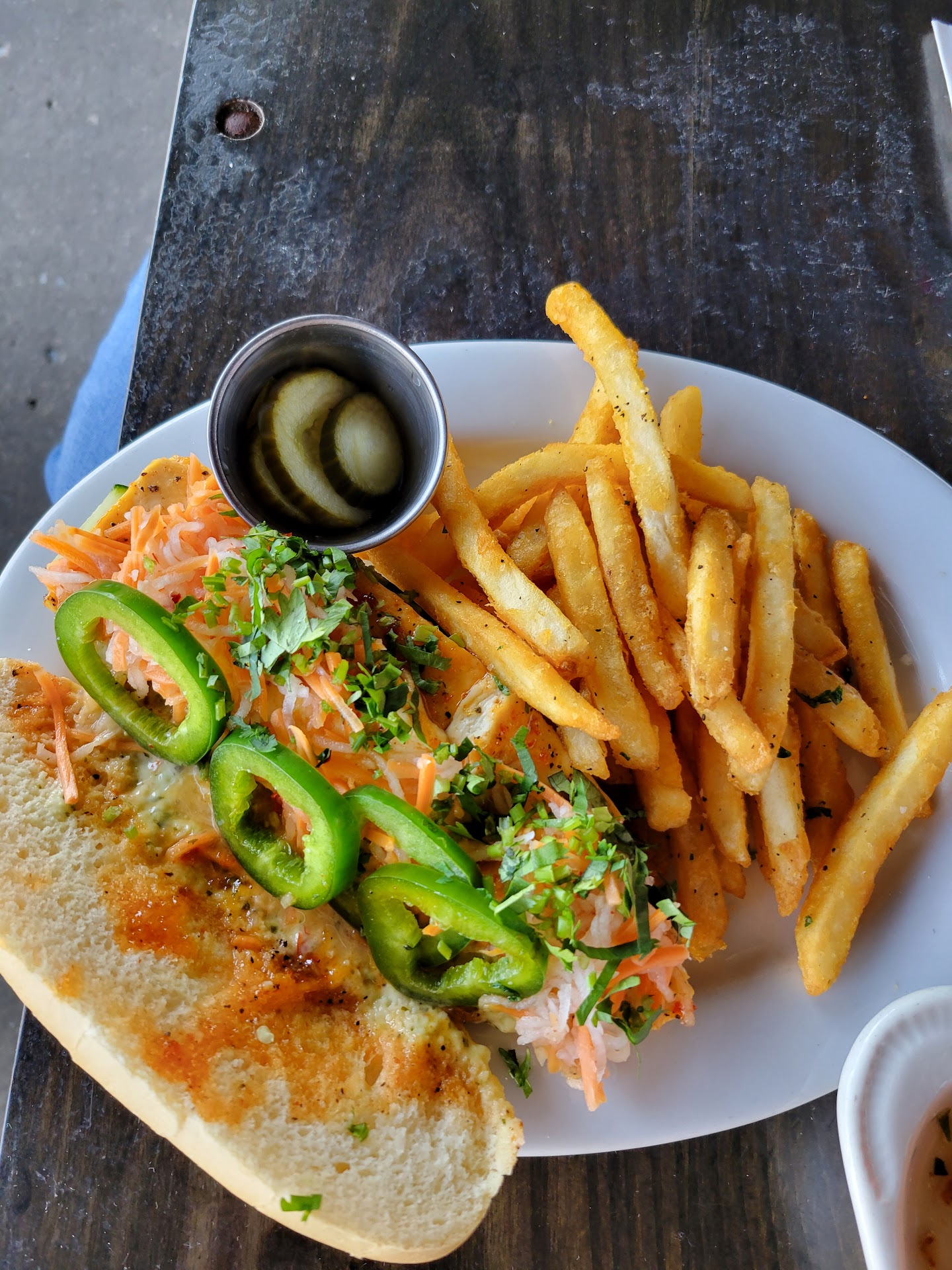 They apparently take reservations, although I didn't see that on the website prior to going so we had to wait a little bit after checking in at the host stand. They have seating in front along the sidewalk under an awning, but it was raining so most folks weren't taking their chances. We managed to get a hi-top table in a bar-ish area near the front window of the establishment.