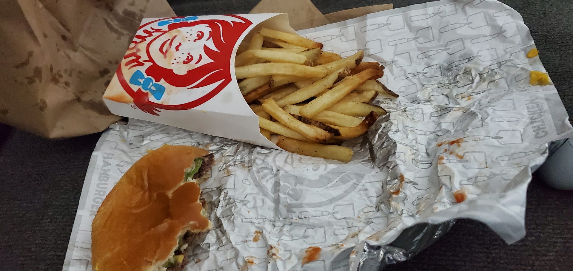 I love burgers and I usually love Wendy's, but today was a total disaster. My car's interior is a mess and my shirt and slacks were so soiled that I had to return home to change clothes. What happened? It comes down to an extreme overload of "special sauce" and other condiments. After leaving the drive-thru, we headed down the road. My wife unwrapped half of my burger and handed it to me. As I took my first bite a slice tomato shot out along with a ton of sauce, leaving my hands, shirt, and steering wheel a slimey, gooey mess. As my wife offered napkin to me, the bun of her burger disintegrated into three separate pieces, leaving her holding it's contents in her bare hands. As we fought to regain control of our meal, things went from bad to worse. Soon, there was more food on us and the interior of my car than in us. Everything we did seemed to just make it worse. We finally put windows down and thre all of it out. As we drove home, we began laughing hysterically. We had been attacked by food and lost. Sticky, gooey, and sloppy doesn't come close to describing us as we rolled into the driveway. We washed up, and changed our clothes. Then, we fried a couple of burgers at home (yummy). Next time I will order burgers WITH NO CONDIMENTS. Wendy's really let us down big time. If anything like this has happened to you, I'd love to...